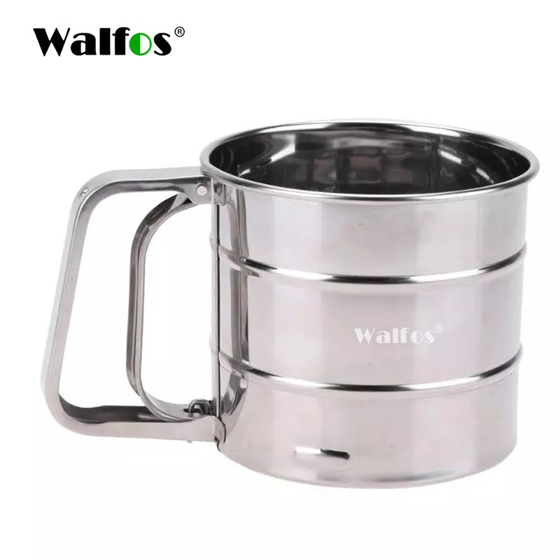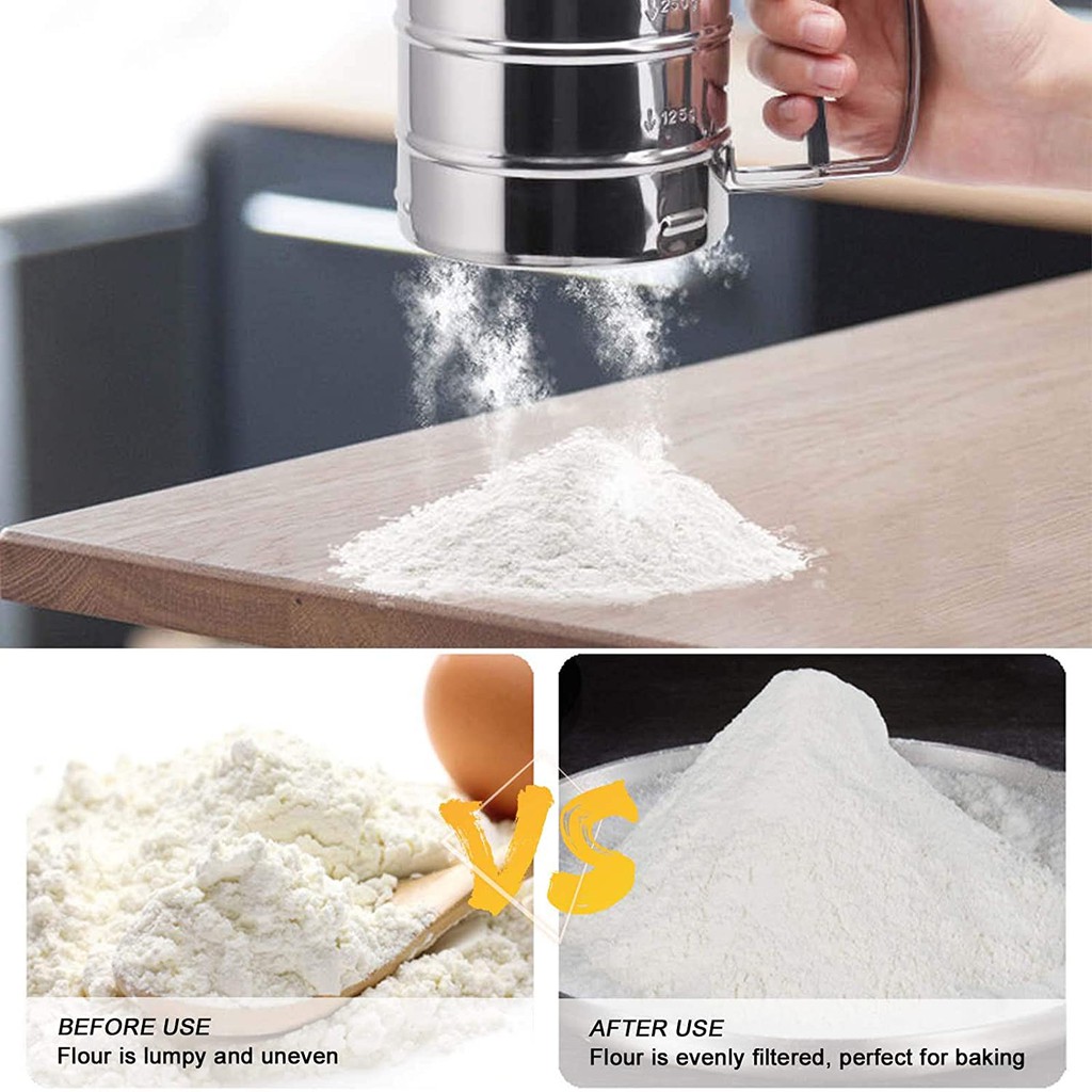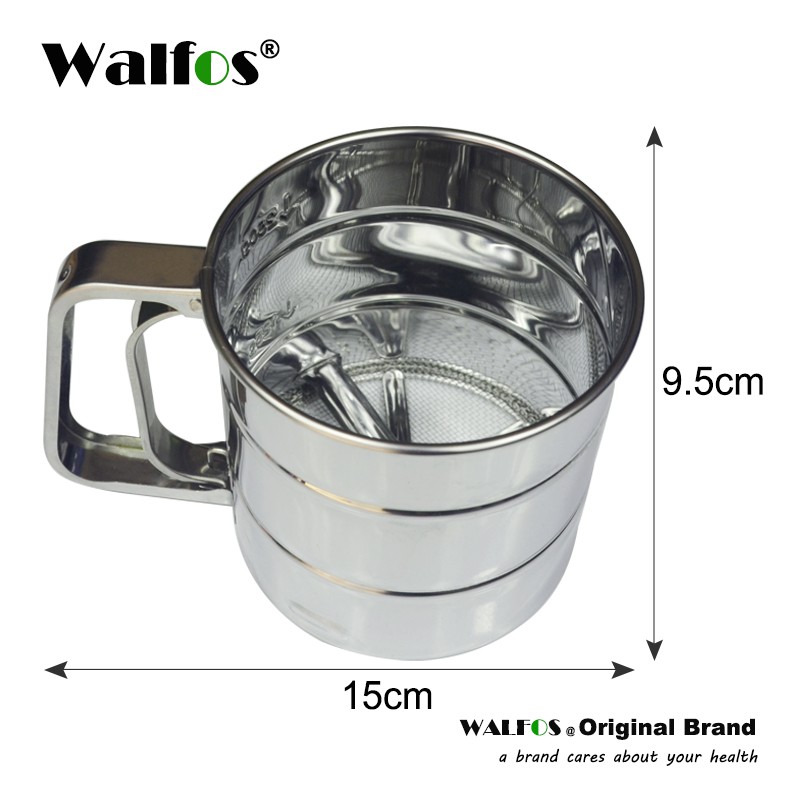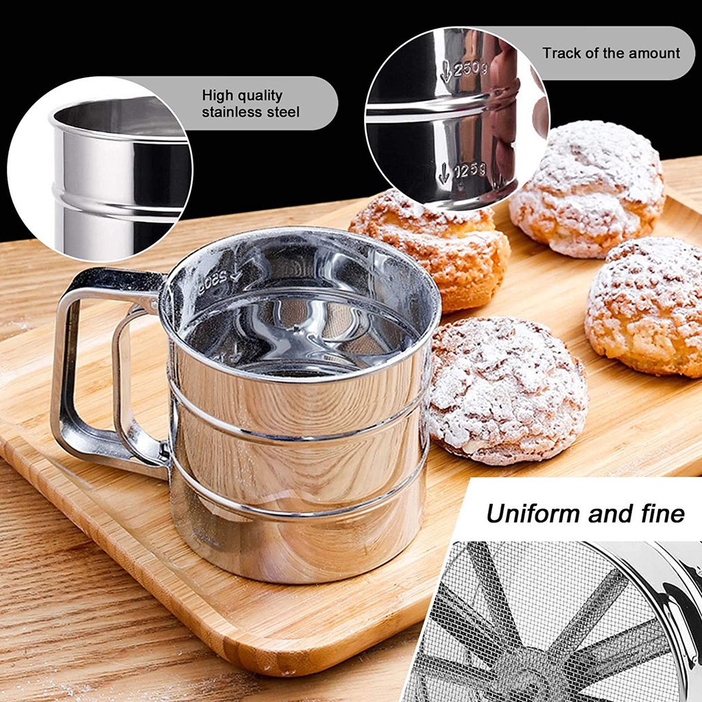 WALFOS Stainless Steel Hand Crank Flour Sifter Flour Sugar Icing Mesh Sifter Shaker ,Double-Layer Flour Sieve, Powder Sieve Cup