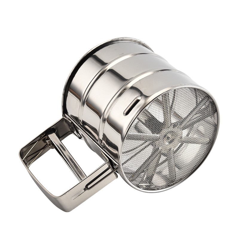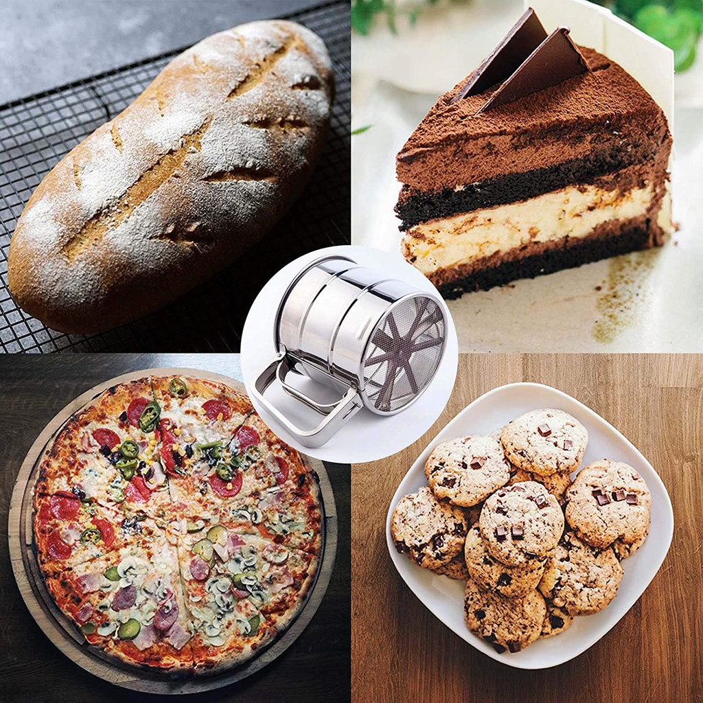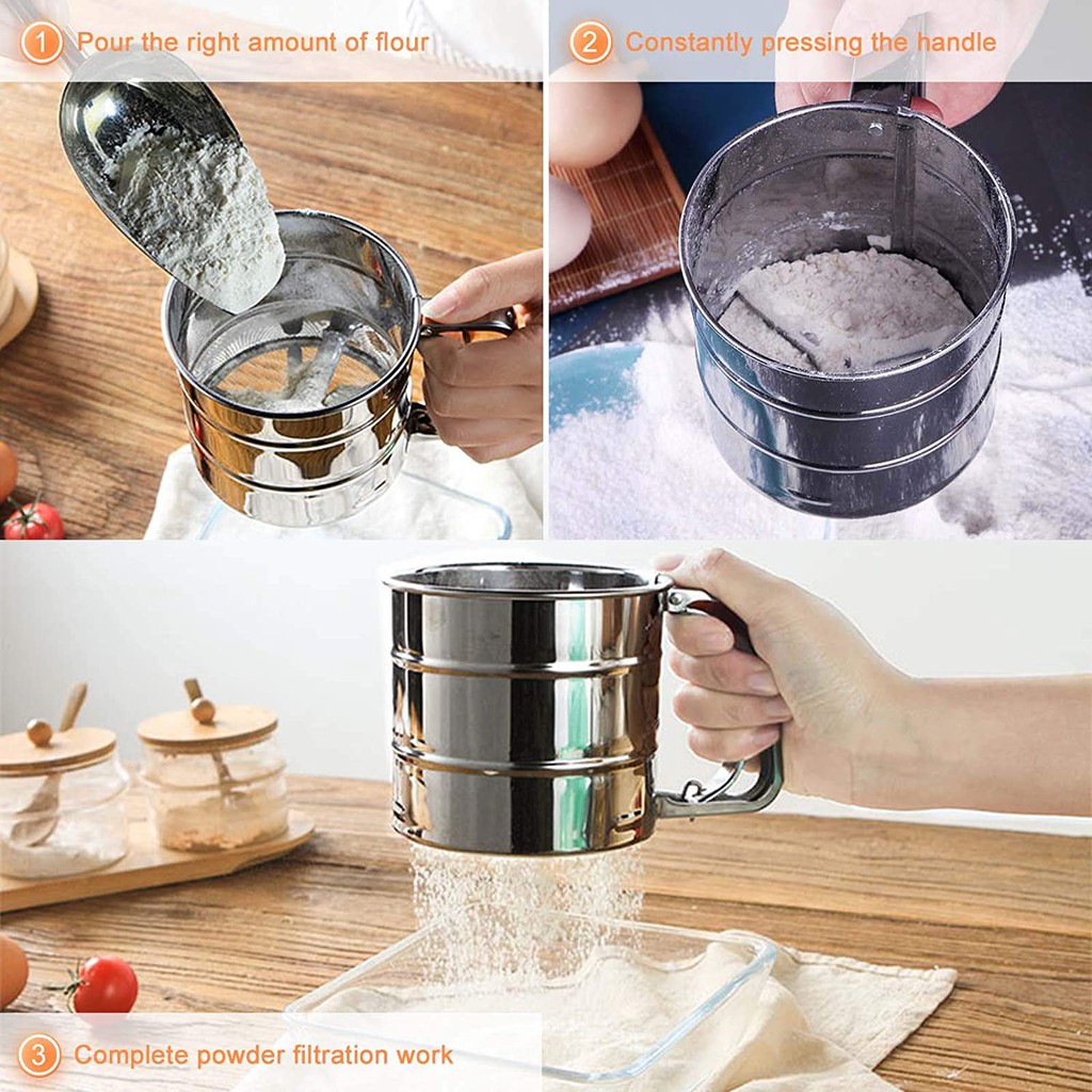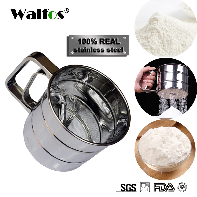 WALFOS Stainless Steel Hand Crank Flour Sifter Flour Sugar Icing Mesh Sifter Shaker ,Double-Layer Flour Sieve, Powder Sieve Cup