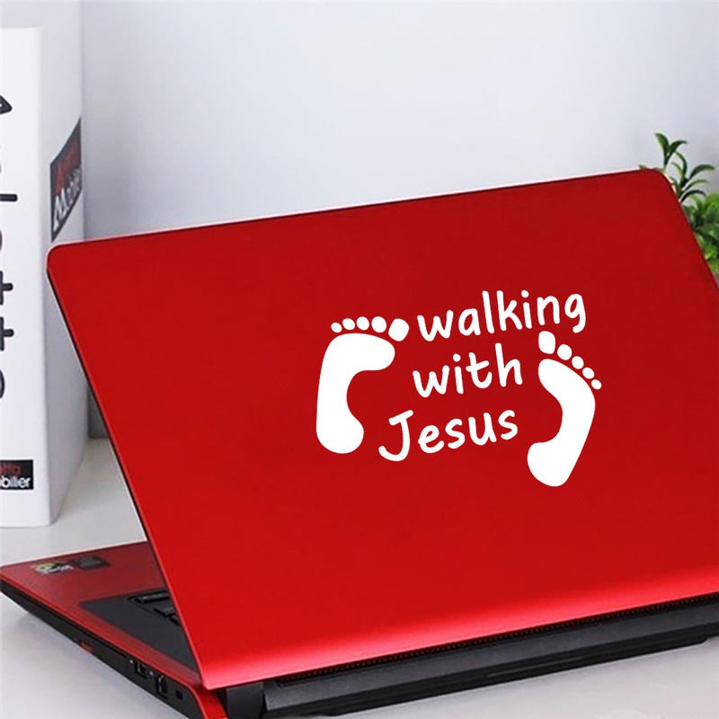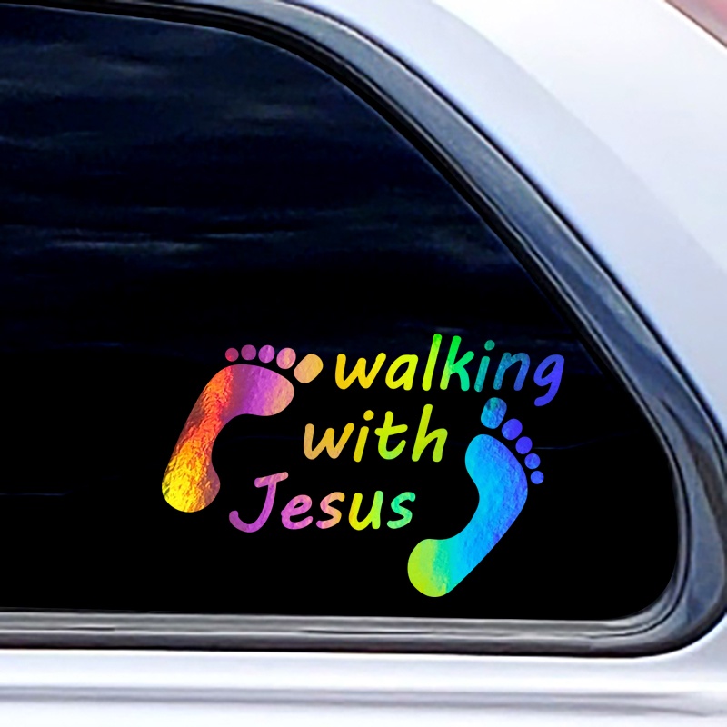 WALKING WITH JESUS Sticker Christian God Footprints Vinyl Decal For Car Window or Laptop New
