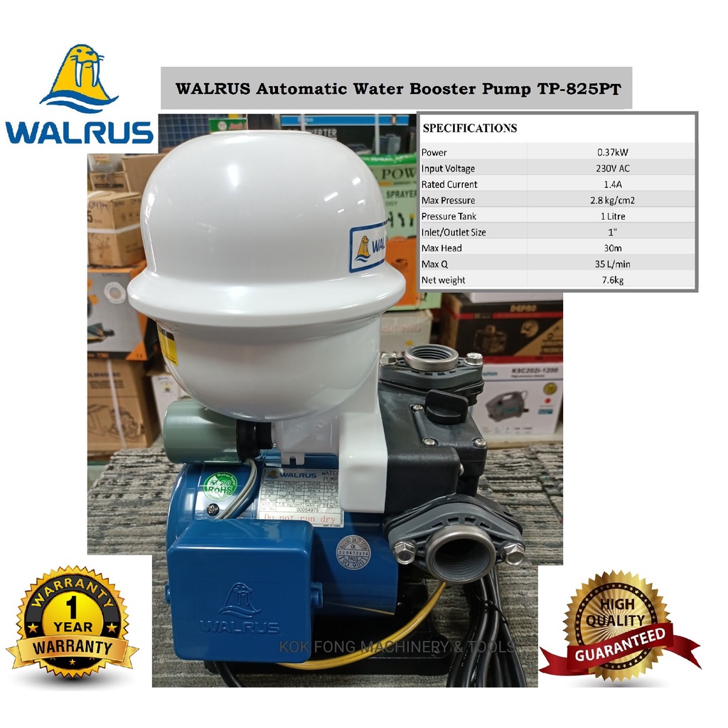 WALRUS TP825PT AUTOMATIC WATER PUMP/AUTOMATIC BOOSTER PUMP/AUTOMATIC HOME BOOSTER PUMP(1/2 HP WATER PUMP)