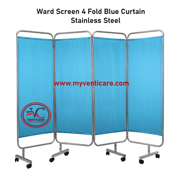 WARD SCREEN 4 FOLD BLUE CURTAIN FOR CLINIC WARD HOSPITAL USE