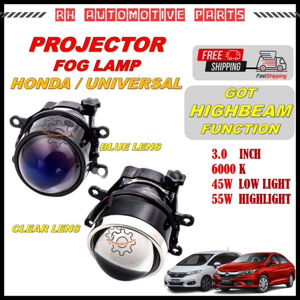 WARRANTY Honda / Universal Fog Light Projector Lens 3.0 Inch Build in Led Fog Lamp Honda Civic City Jazz Fit Crz