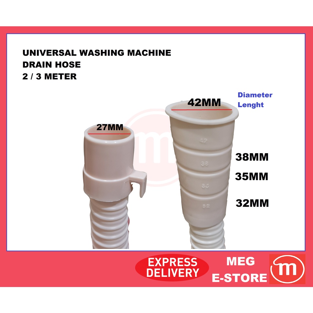 WASHING MACHINE WATER OUTLET DRAIN HOSE UNIVERSAL PIPE CONNECTOR (2Meter/3Meter)