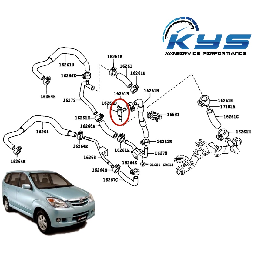 WATER PUMP PIPE with radiator cork # HOSE, WATER BY-PASS, NO.2 # TOYOTA AVANZA 1.3 F601,F602 K3VE (10/2004-07/2006)