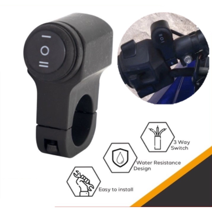 WATERPROOF OFF ON 3 WAY BUTTON 3 WIRE SWITCH ALUMINIUM HANDLEBAR MOUNTING SPOTLIGHT SCOOTER SUPERBIKE ATV TOURING BIKE