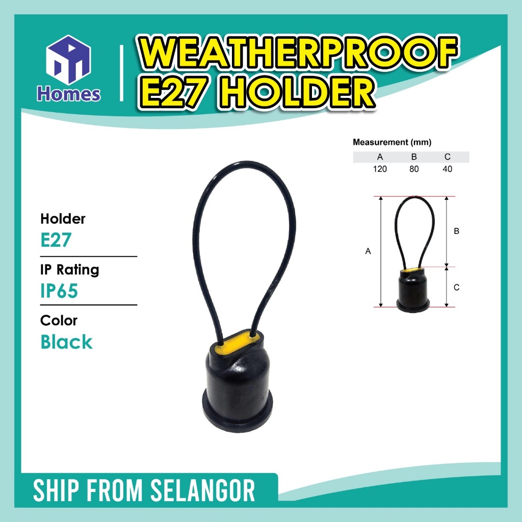 WATERPROOF / WEATHERPROOF Outdoor E27 LAMP HOLDER / PVC LAMP HOLDER IP54 Black
