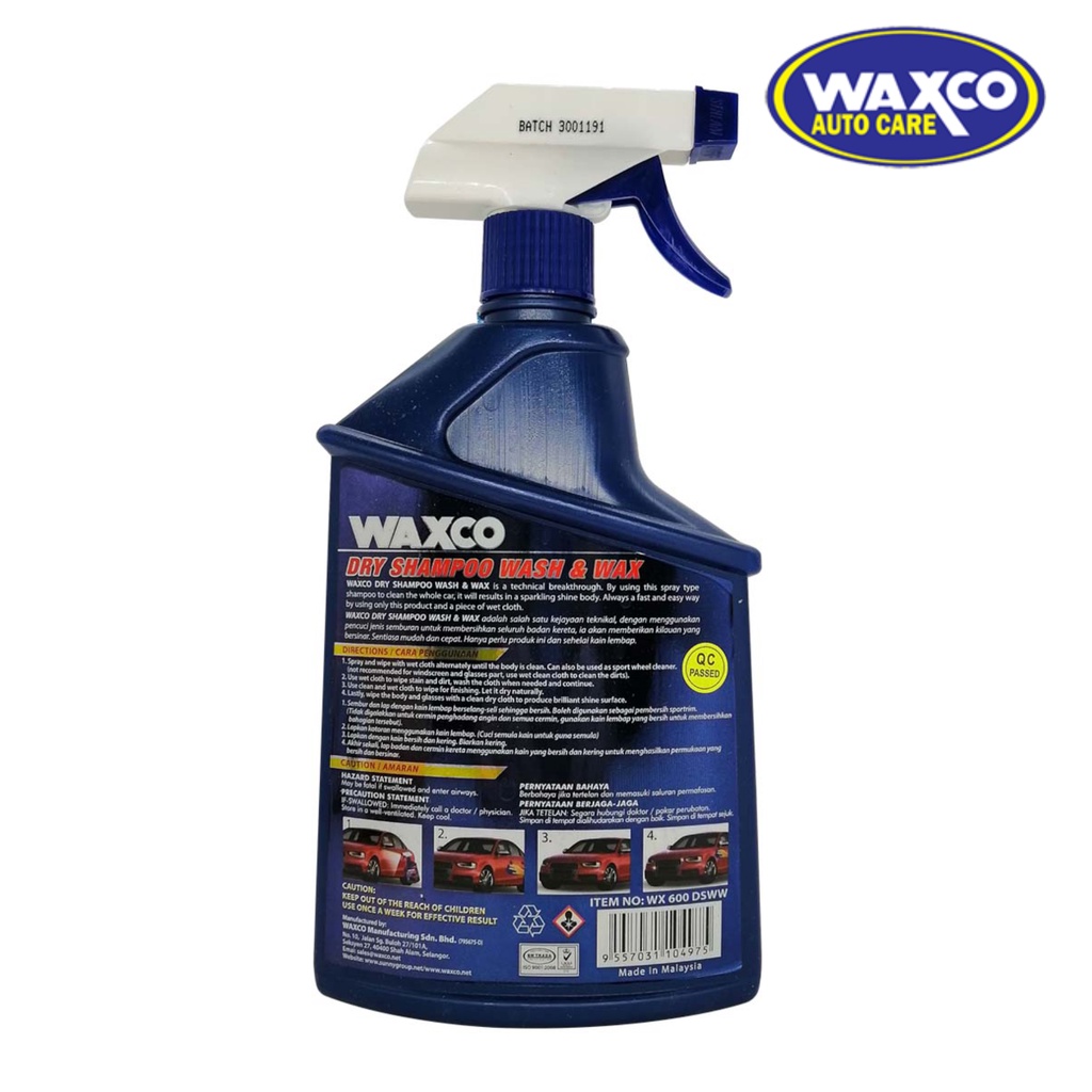 WAXCO Dry Shampoo Wash & Wax Waterless Wash (Spray Type} - 600ml