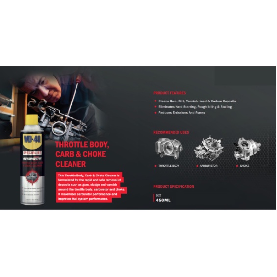 WD-40 Specialist Automotive Throttle Body Carburetor Choke Cleaner 450ml WD40 Pembersih Pendikit