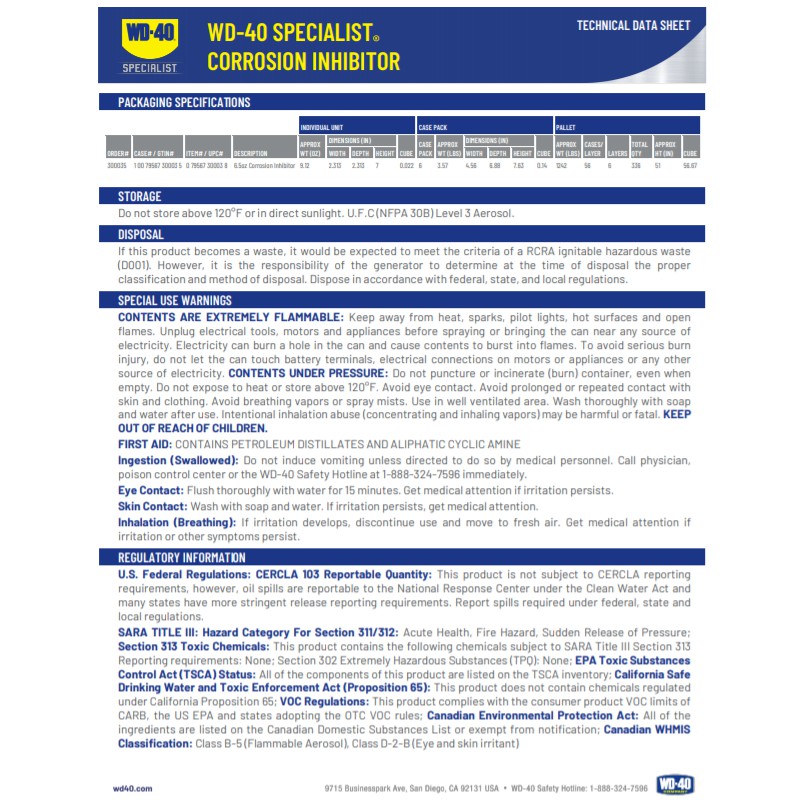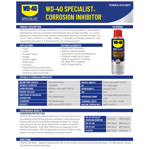 WD-40 Specialist Long Term Corrosion Inhibitor Spray 185g (Anti Rust 1 Year) WD40 PERENCAT HAKISAN jangka masa panjang