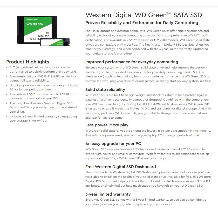 Western Digital WD Internal SSD Internal Solid State Drive 2.5" - Green (240GB/480GB/1TB) GREEN SATA