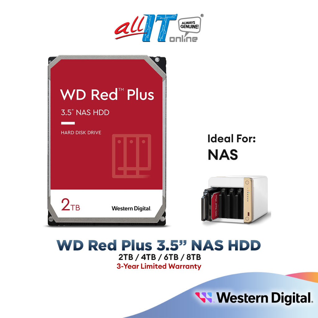 WD Western Digital Red Plus Internal NAS HDD NAS Hard Drive 3.5" (2TB / 4TB / 6TB / 8TB)