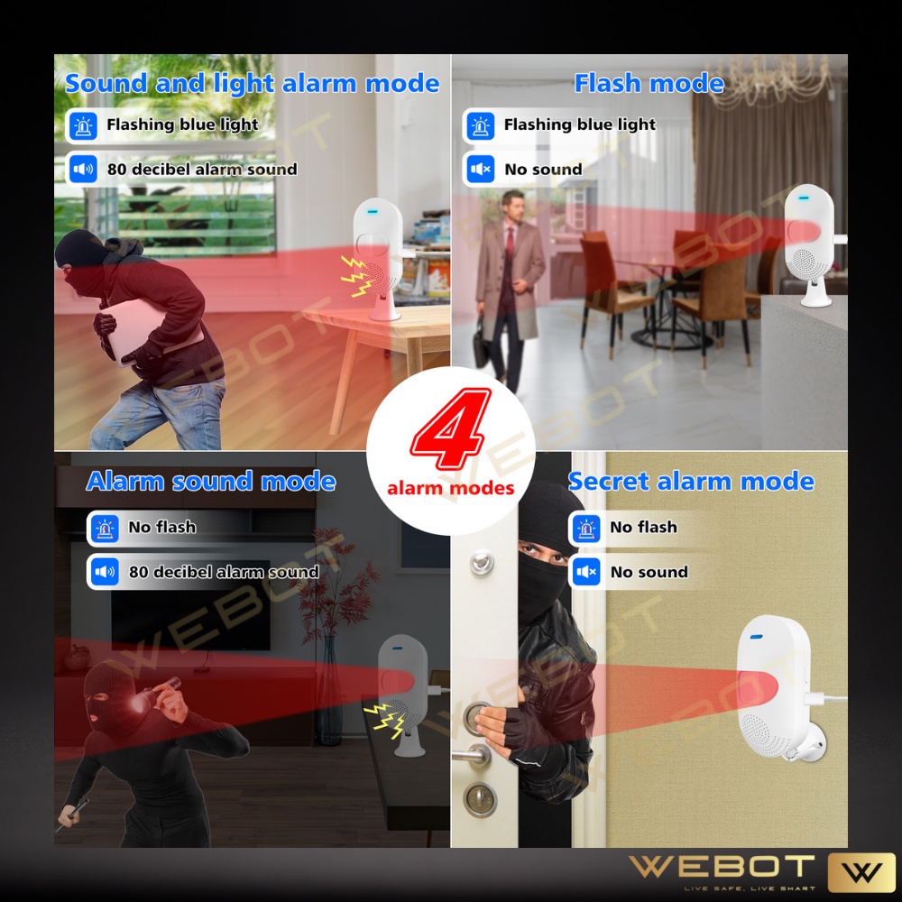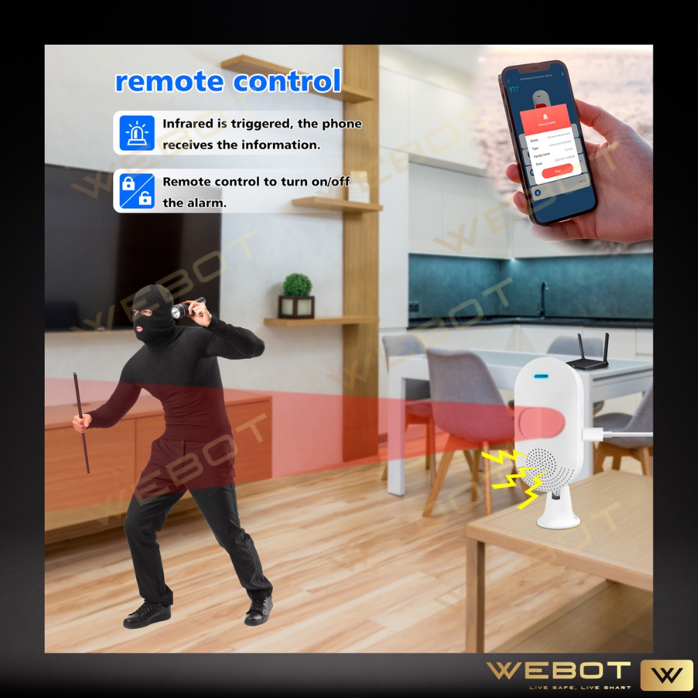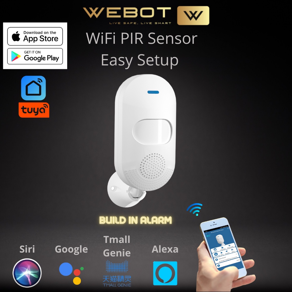WEBOT WiFi Smart Build in Siren PIR Motion Detector Human Infrared Sensor Remote Monitoring [Tuya APP/Smartlife APP]