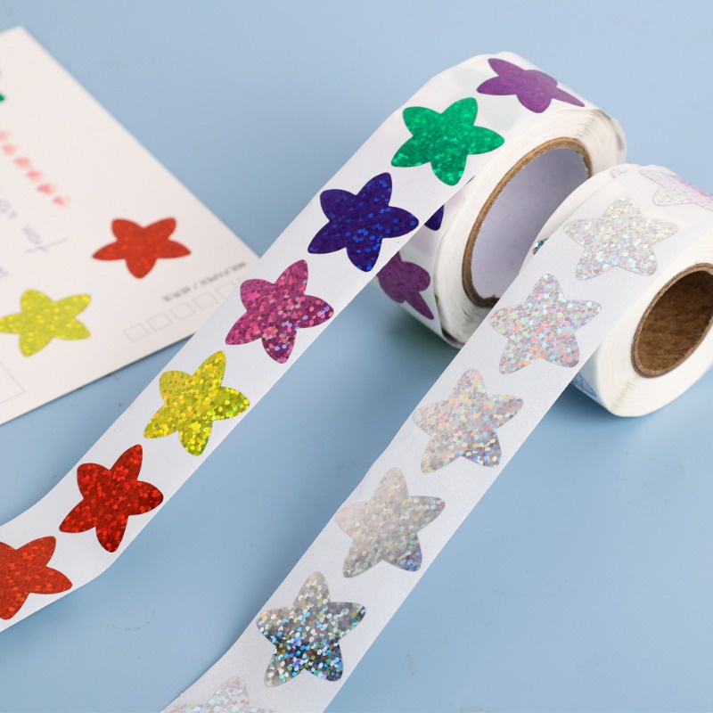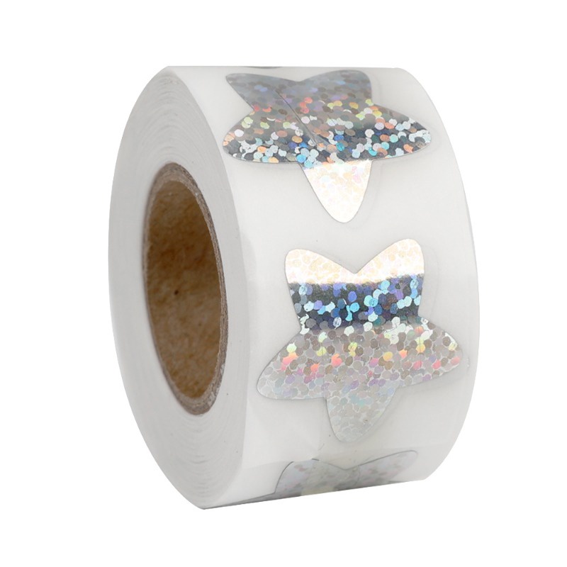 WF 500Pcs/Roll Laser Glitter Five-pointed Stars Delicate Stickers Decorative Party Seal Label Business Sticker Christma