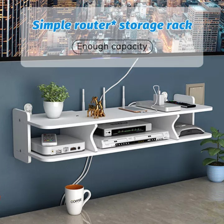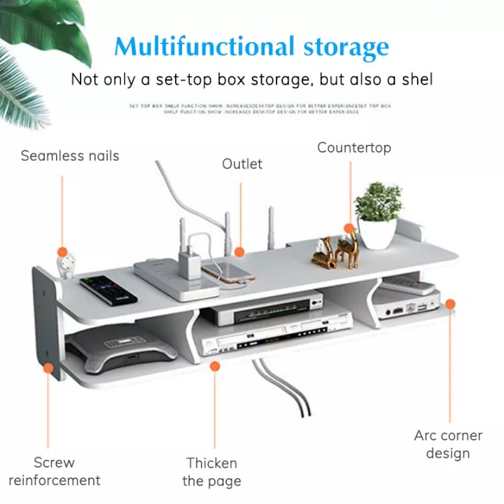 WF020 Pusat Media Hiburan TV Dinding Set-Top Kotak Rak Penghala Penyimpanan untuk Rak TV Konsol Perabot Ruang Tamu