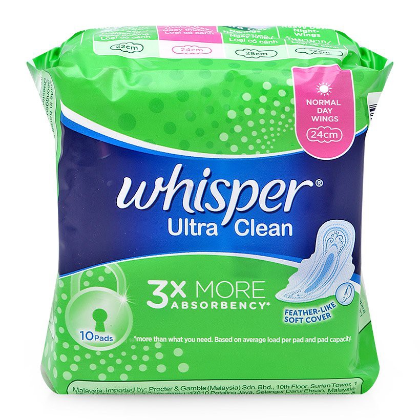 WHISPER ULTRA CLEAN NORMAL DAY WINGS 24CM 10 PADS