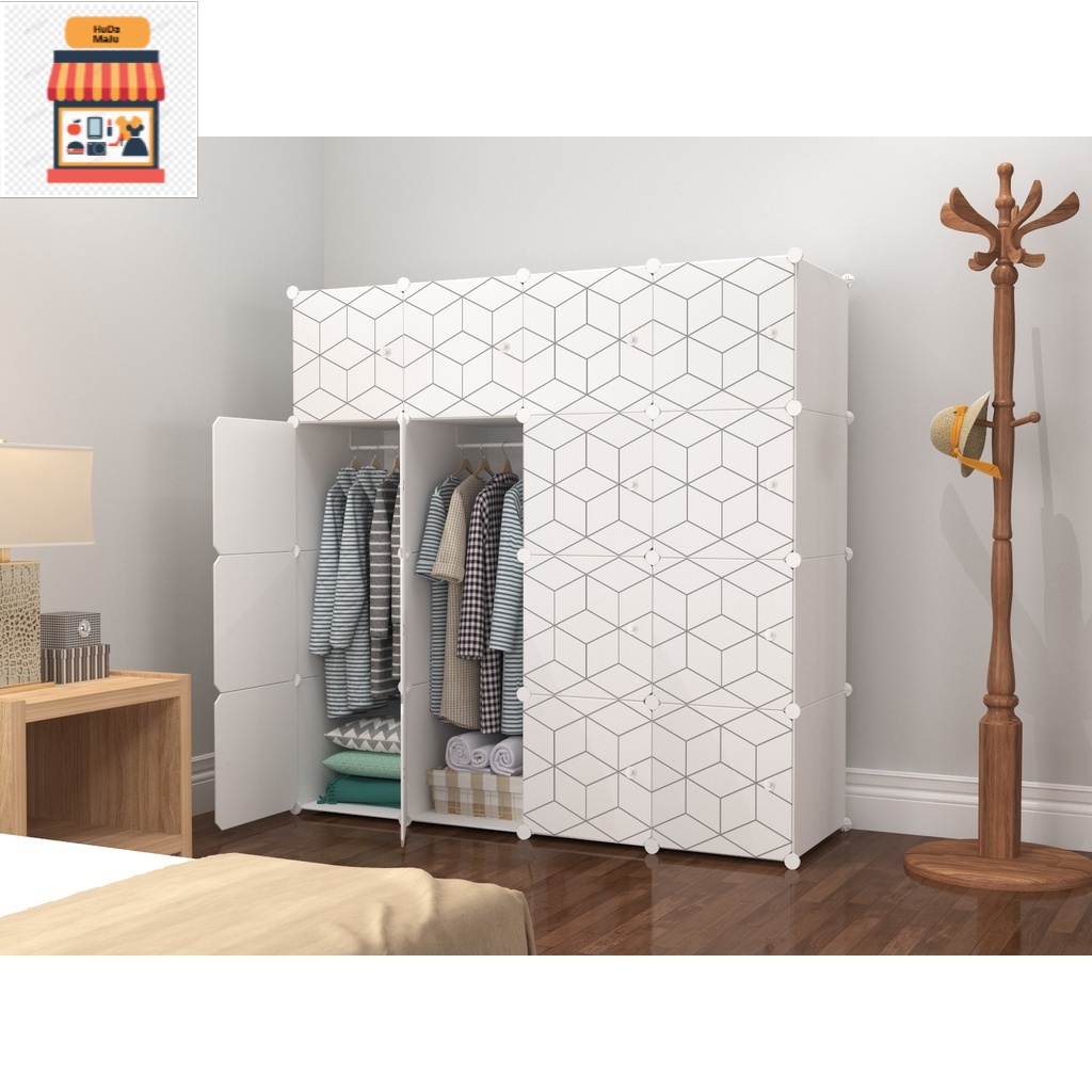 WHITE 16C Almari Karton DIY Children Cartoon Cabinet Wardrobe Foldable Rack Cupboard Cabinet