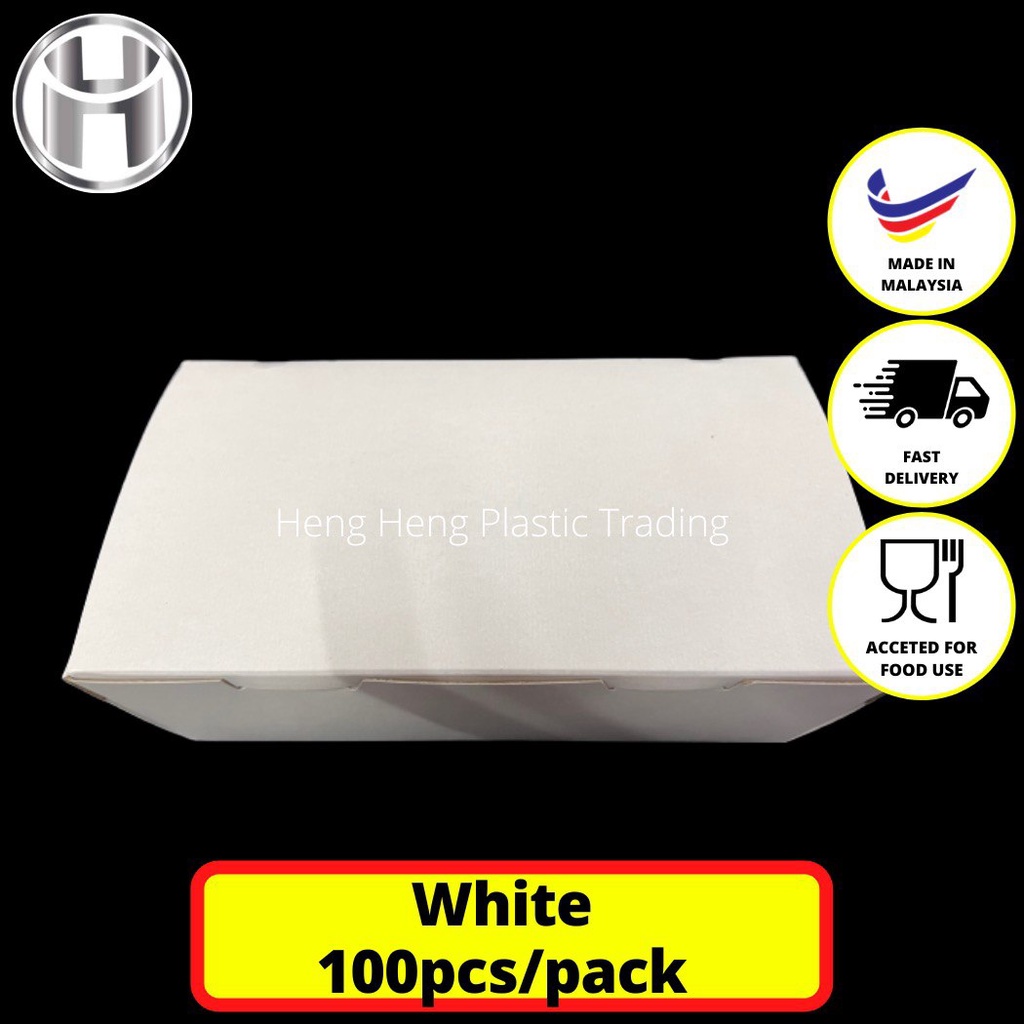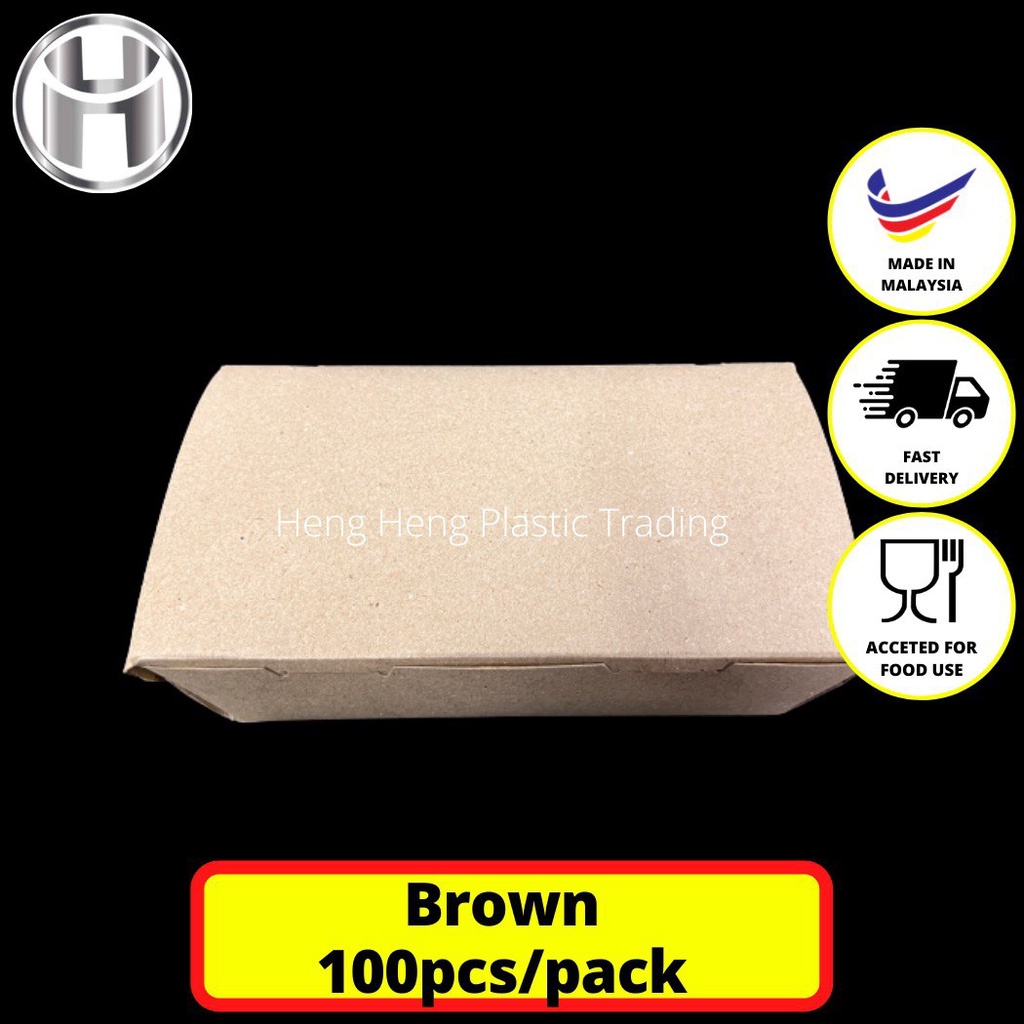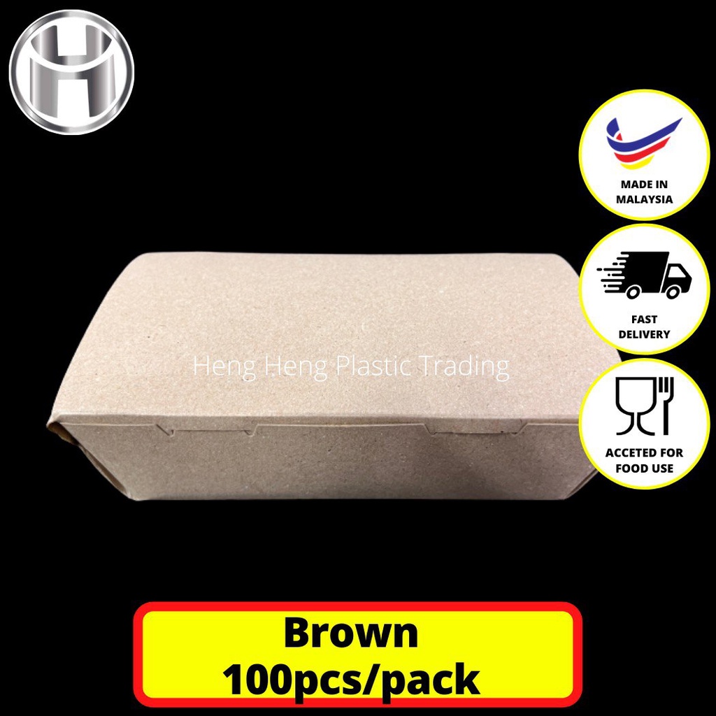 WHITE & BROWN PAPER LUNCH BOX 100PCS