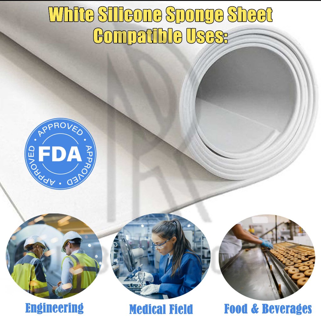 WHITE Silicone Sponge Rubber Sheet Food Grade Closed Cell Silicone Foam Gasket (1.5mm x 1m x 1m Sizes!)