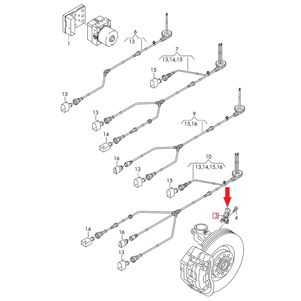 WHT003858 REAR RIGHT ABS SENSOR | WHEEL SPEED SENSOR FOR VW GOLF MK5/MK6 EOS SCIROCCO JETTA BETTLE TOURAN AUDI TT MK2
