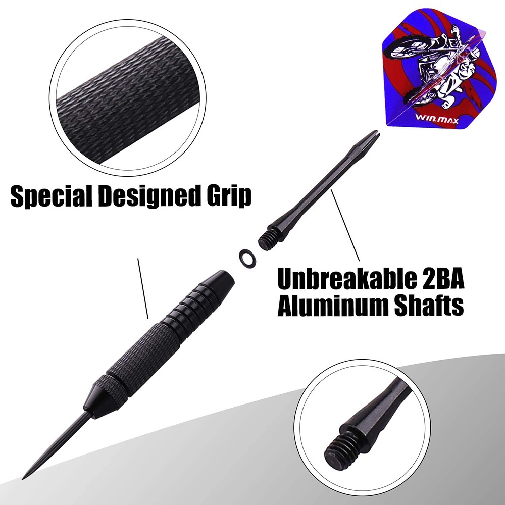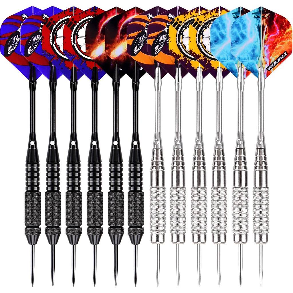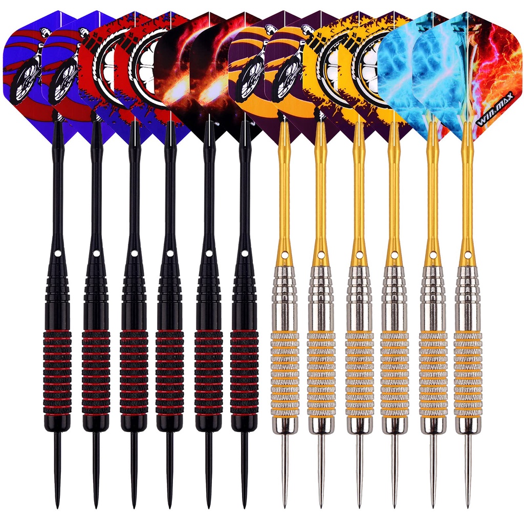 WINMAX Darts Set of 12 Steel Darts Darts 24 g Professional Steel Darts with Metal Tips Steel Darts Aluminium Shaft 30 Flights 50 Anti-Slip Rubber Rings Steel darts