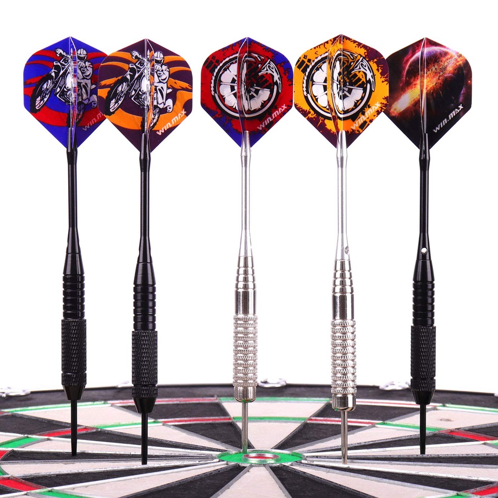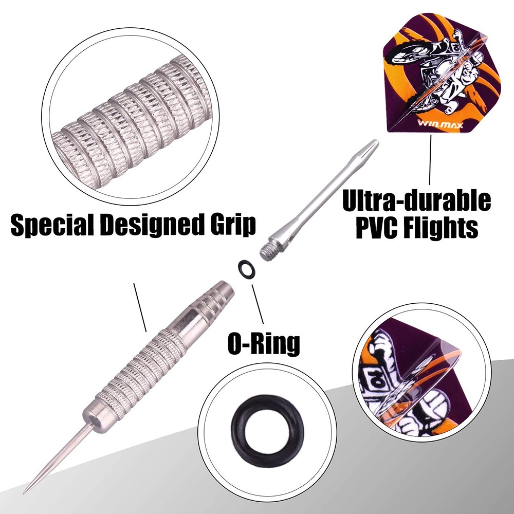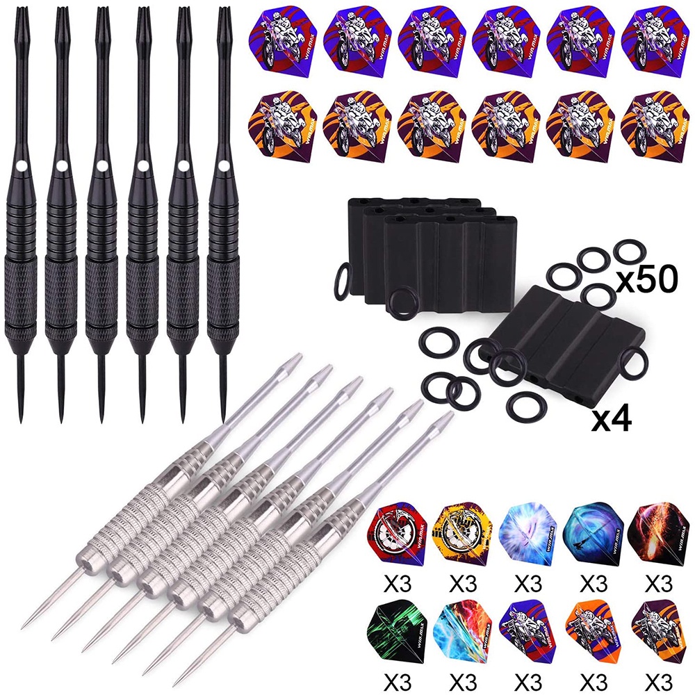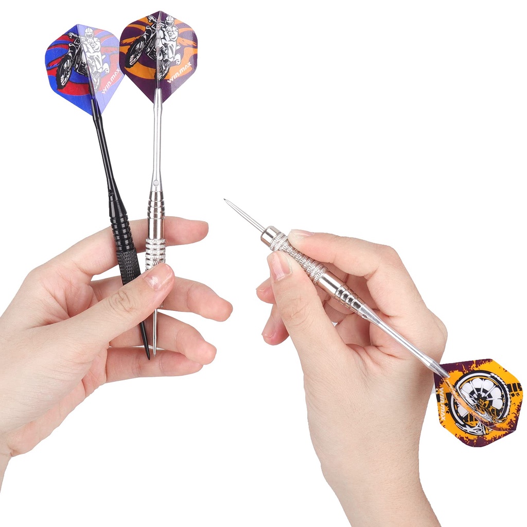 WINMAX Darts Set of 12 Steel Darts Darts 24 g Professional Steel Darts with Metal Tips Steel Darts Aluminium Shaft 30 Flights 50 Anti-Slip Rubber Rings Steel darts