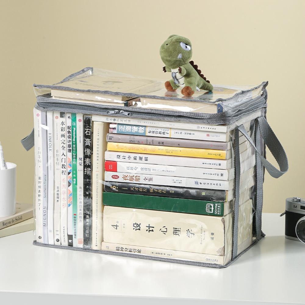 WINTE Comic Book Storage Bag, Zipper Transparent Collapsible Pouch, Portable Handle Stackable Dust Proof Pouch Student