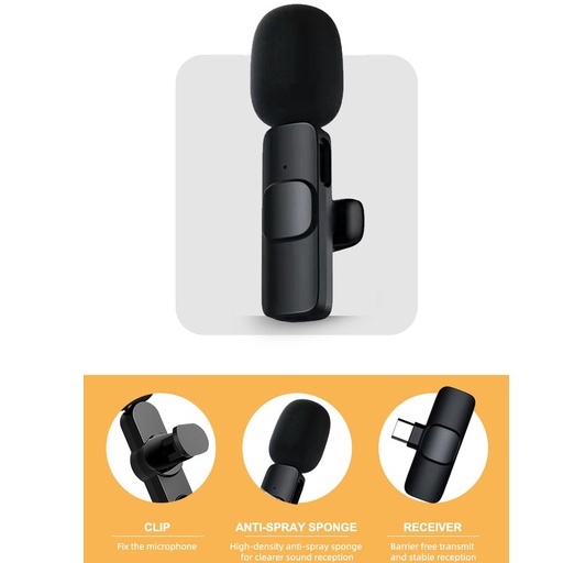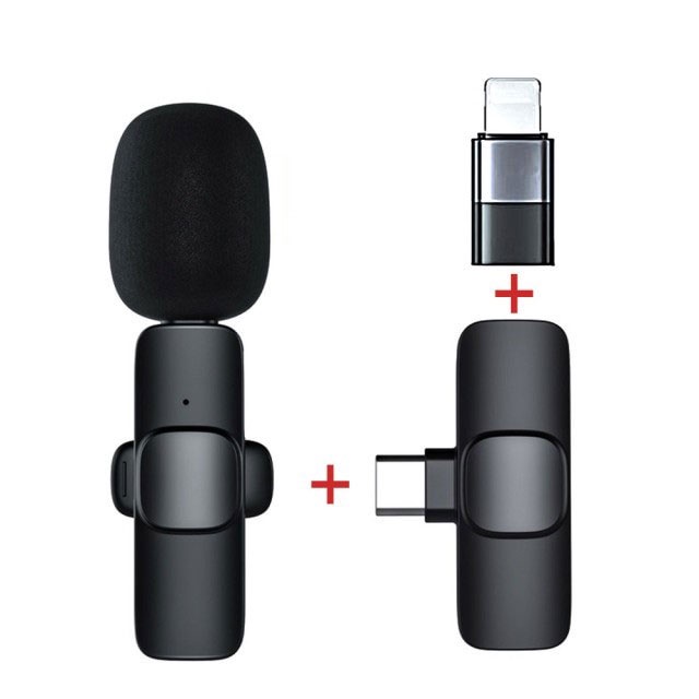 WIRELESS CLIP-ON MICROPHONE Smartphone Noise Reduction Mic Lavalier Microphone Plug & Play USB-C Lightning Connector LC
