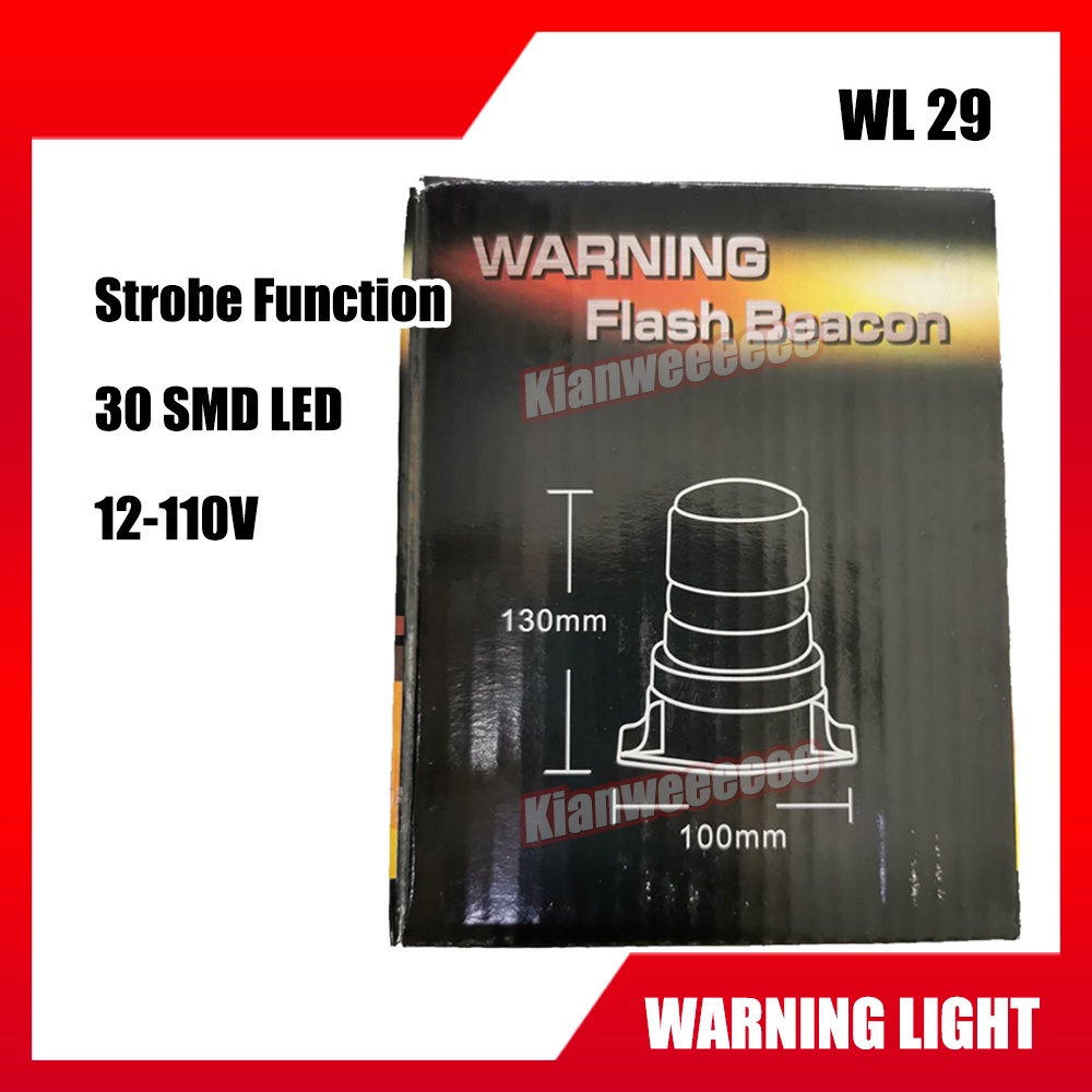 WL29 30SMD Warning Light Flash Beacon Strobe Light AMBER (12V-110V)