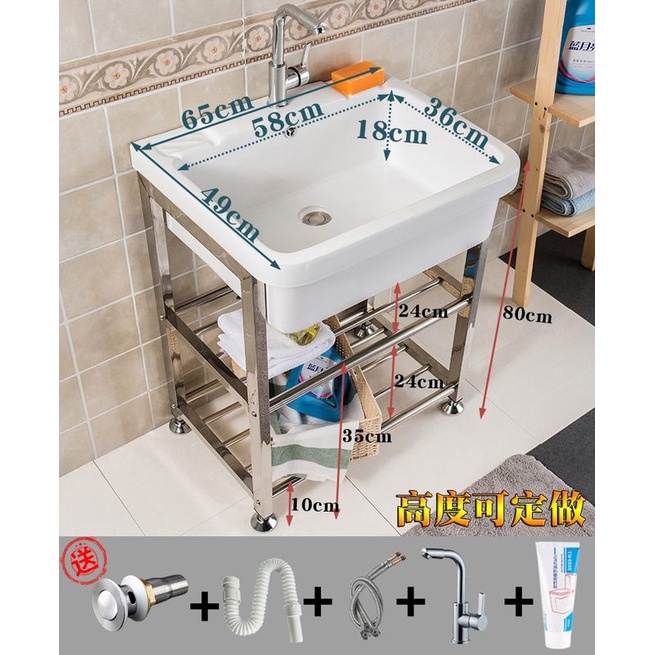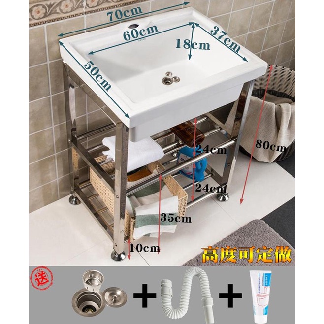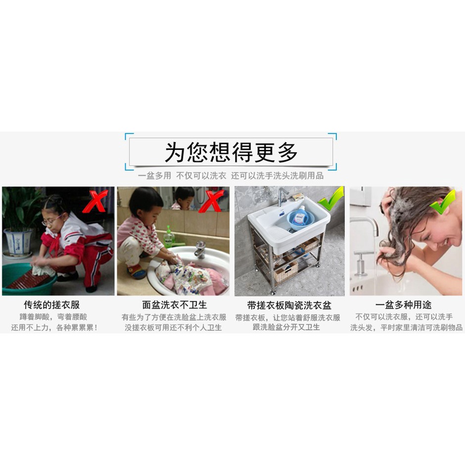 WLBalcony Laundry Tub Stainless Steel with Washboard Whole Washbin Washbasin Wash Basin Sink Laundry Table Domestic To00