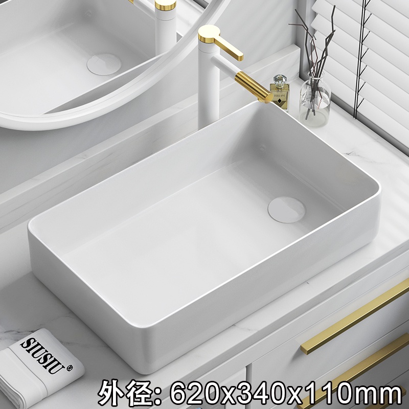 WLCross-Hole Side Drain Table Basin Washing Machine Cabinet Wash Basin Offset Drain Rectangular Wash Basin Sink