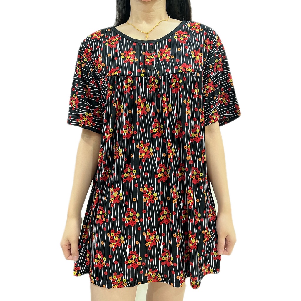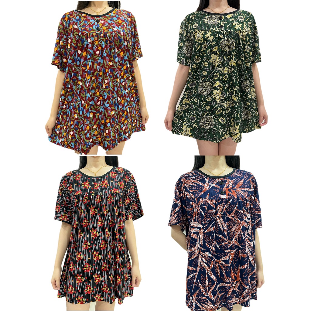 WOMEN CASUAL FLOWER BLOUSE SHIRT FOR MOM STRETCHABLE/BAJU IBU BAJU BUNGA BAJU KAIN SEJUK