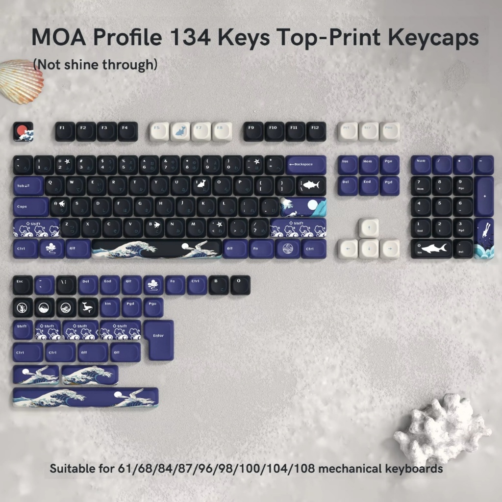 WOMIER 134 Keys MOA Profile Dye-sub PBT Japanese Keycap Set Compatible with 60% 75% 96% 100% Cherry Gateron MX Switches Mechanical Gaming Keyboard