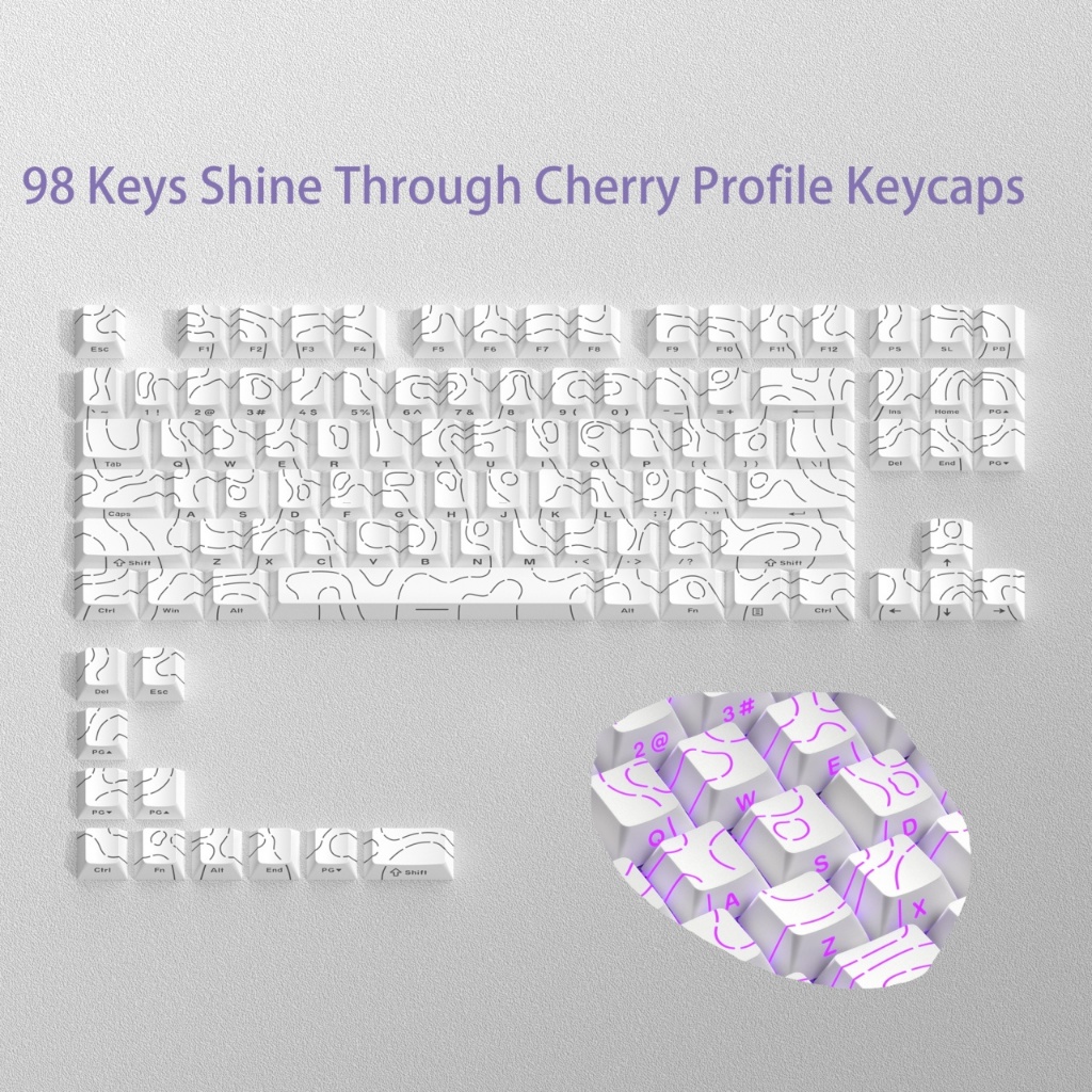 WOMIER Topographic Vision 134 Keys Side Printed Dye Sub Shine Through RGB Backlit PBT Keycaps Set