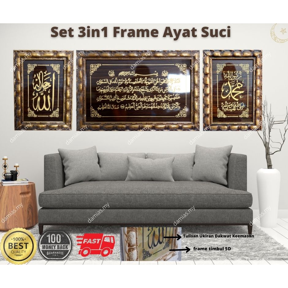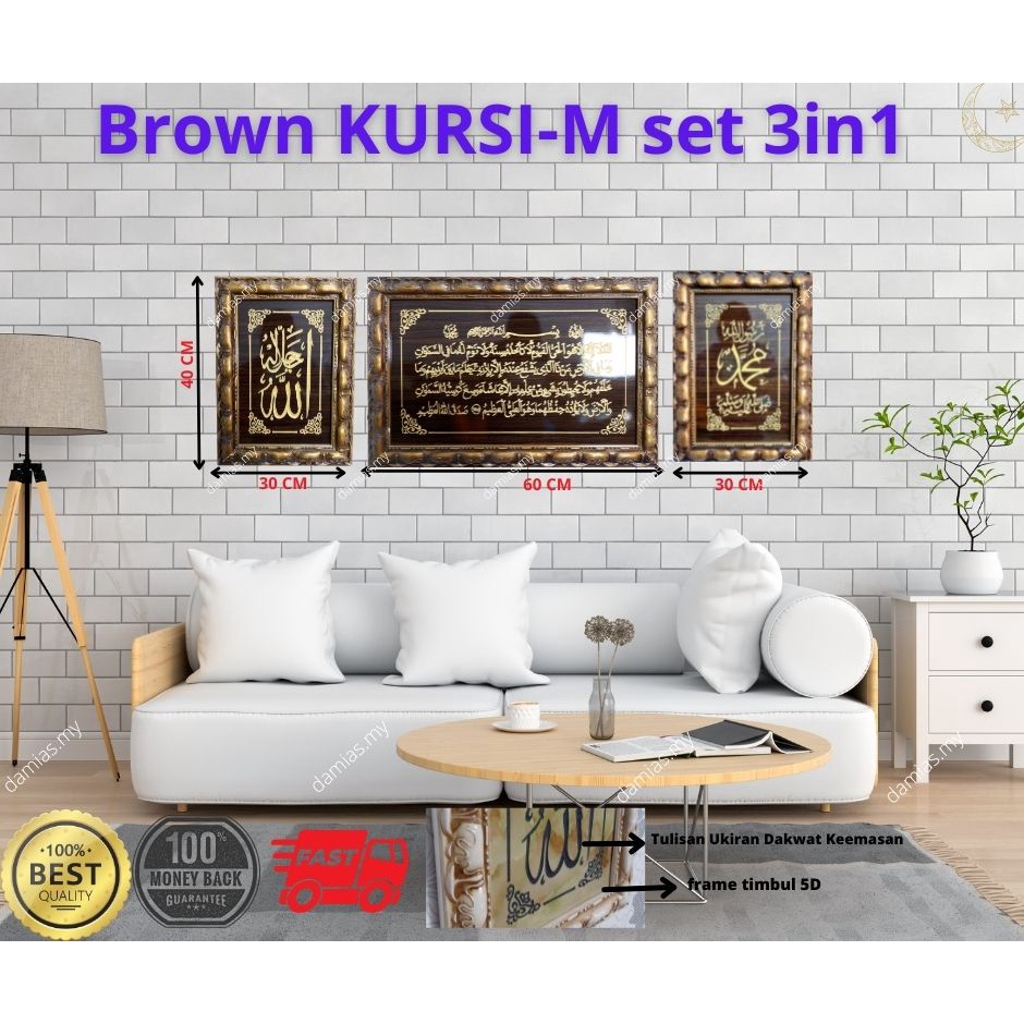 WOODEN MABLE FRAME ISLAMIC SET OF 3PCS REAL UKIRAN DAN BINGKAI TIMBUL BUKAN JENIS CANVAS TAPI ORIGINAL VVIP WALL FRAME