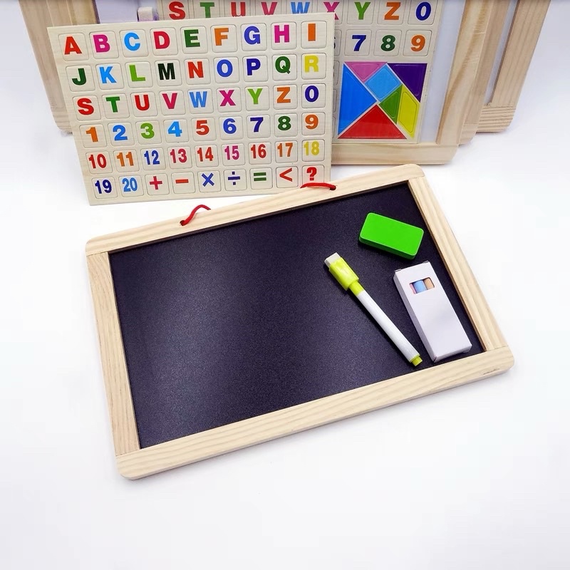 WOODEN MAGNETIC BOARD WITH ALPHABET & NUMBERS MAGNET Multifunction 2in1 White Board Black Board Magnetic Board big Size