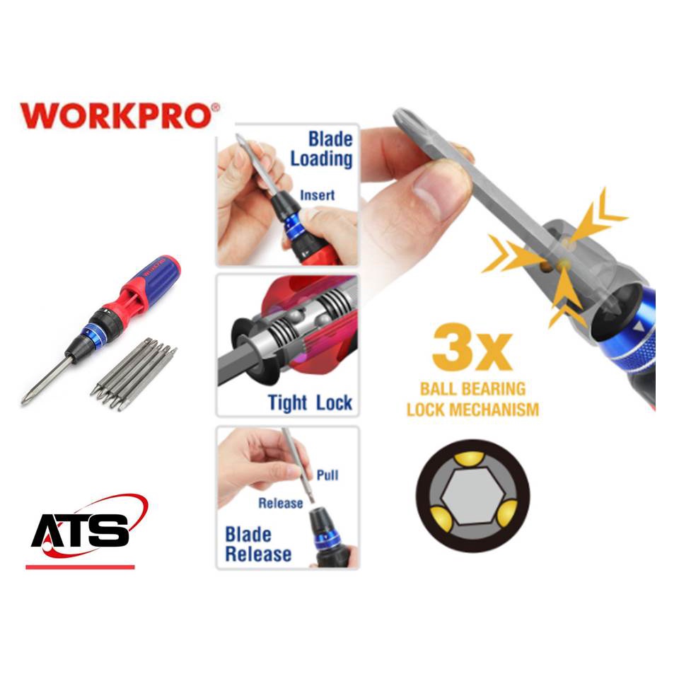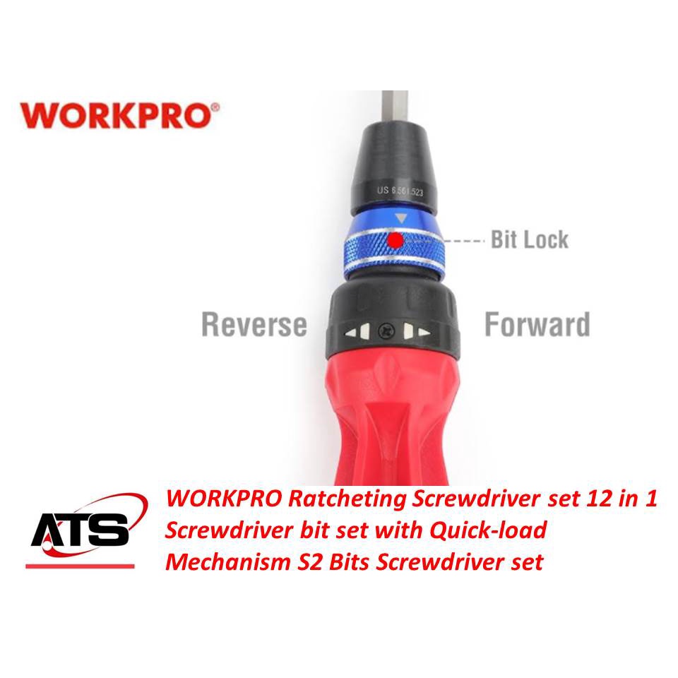 WORKPRO Ratcheting Screwdriver set 12 in 1 Screwdriver bit set with Quick-load Mechanism S2 Bits Screwdriver set