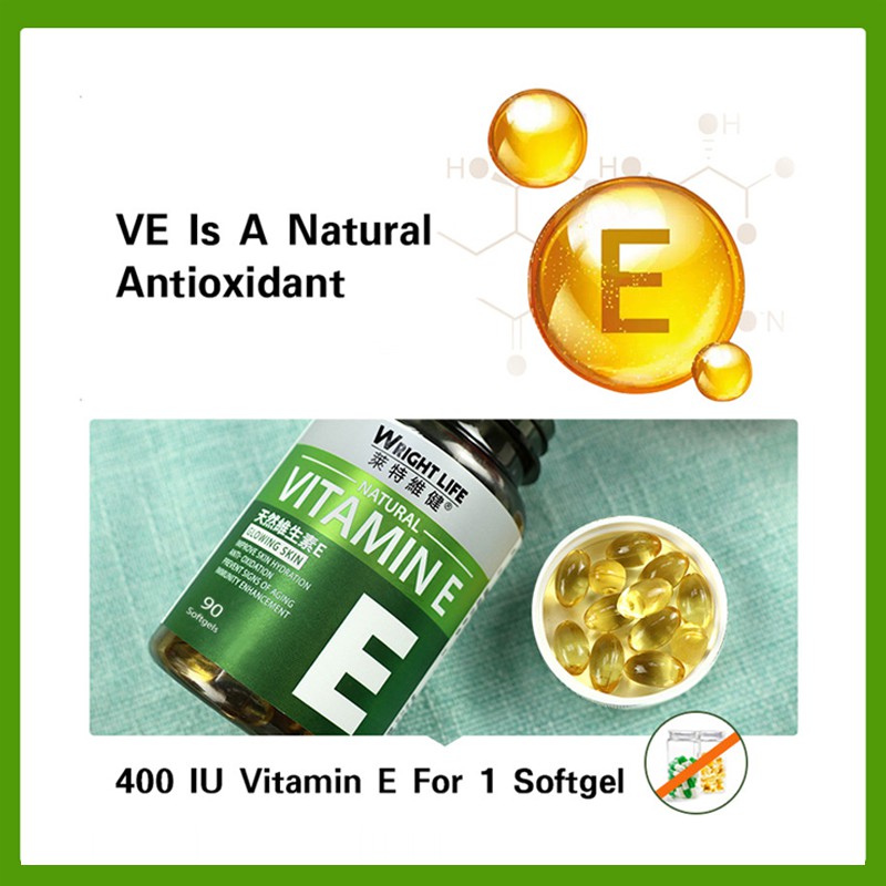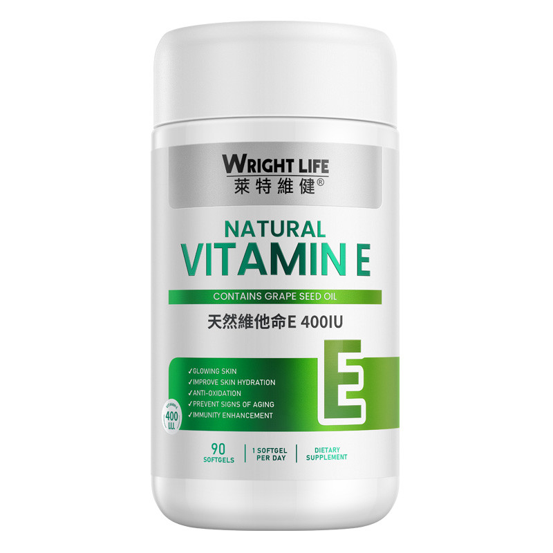 WRIGHT LIFE Vitamin E 400IU Grape Seed Oil Vitamine E Capsule For Face Skin Anti-Aging Supplement (90 Soft-gels)