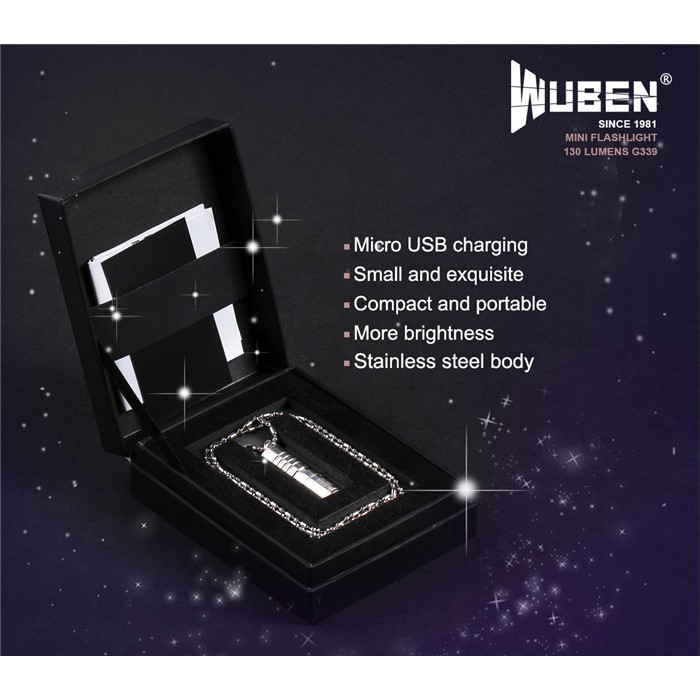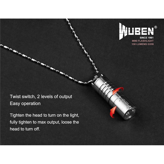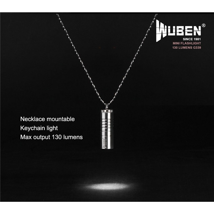 WUBEN G339 Stainless Steel Cree XP-G2 130LM USB Rechargeable LED Necklace Flashlight c/w Battery
