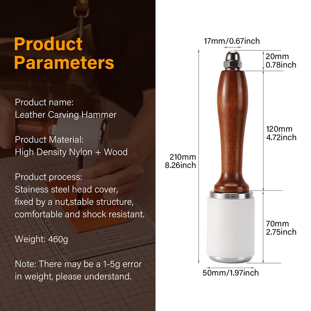 WUTA Professional Leather Carve Hammer Nylon Hammers Mallet Wood Handle For Leathercraft Punch Printing Percussion