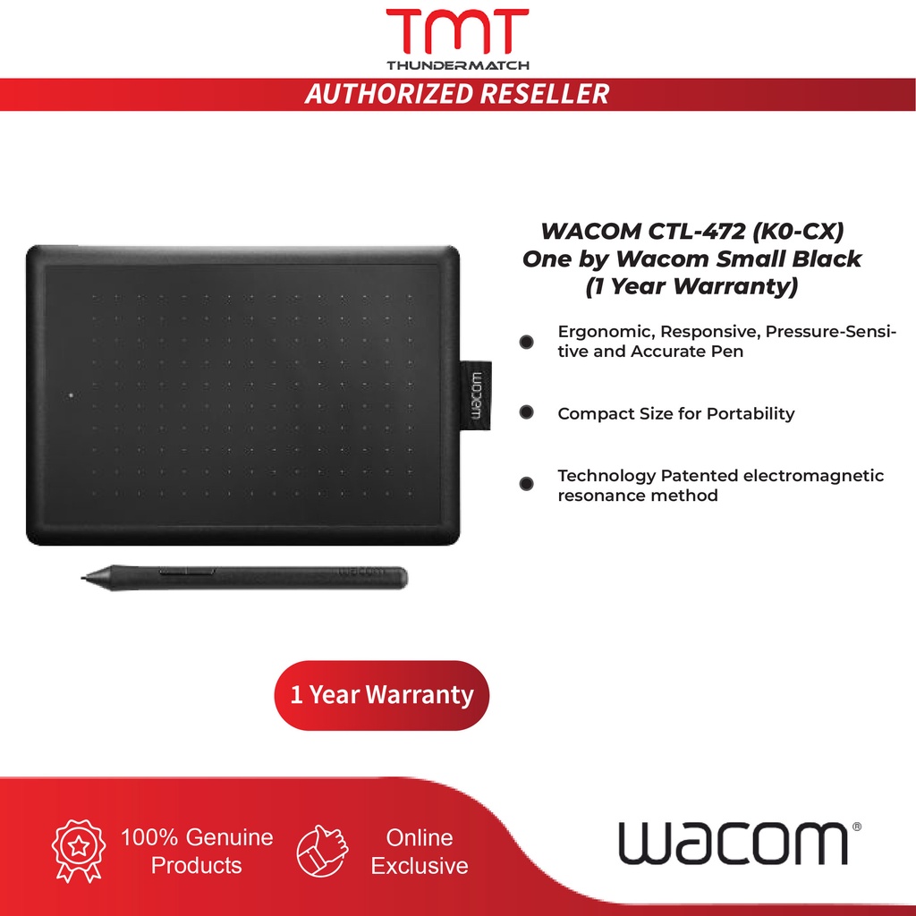 Wacom CTL-472 (K0-CX) / CTL-672 (K0-CX) One by Wacom Small/Medium Black (1 Year Warranty)