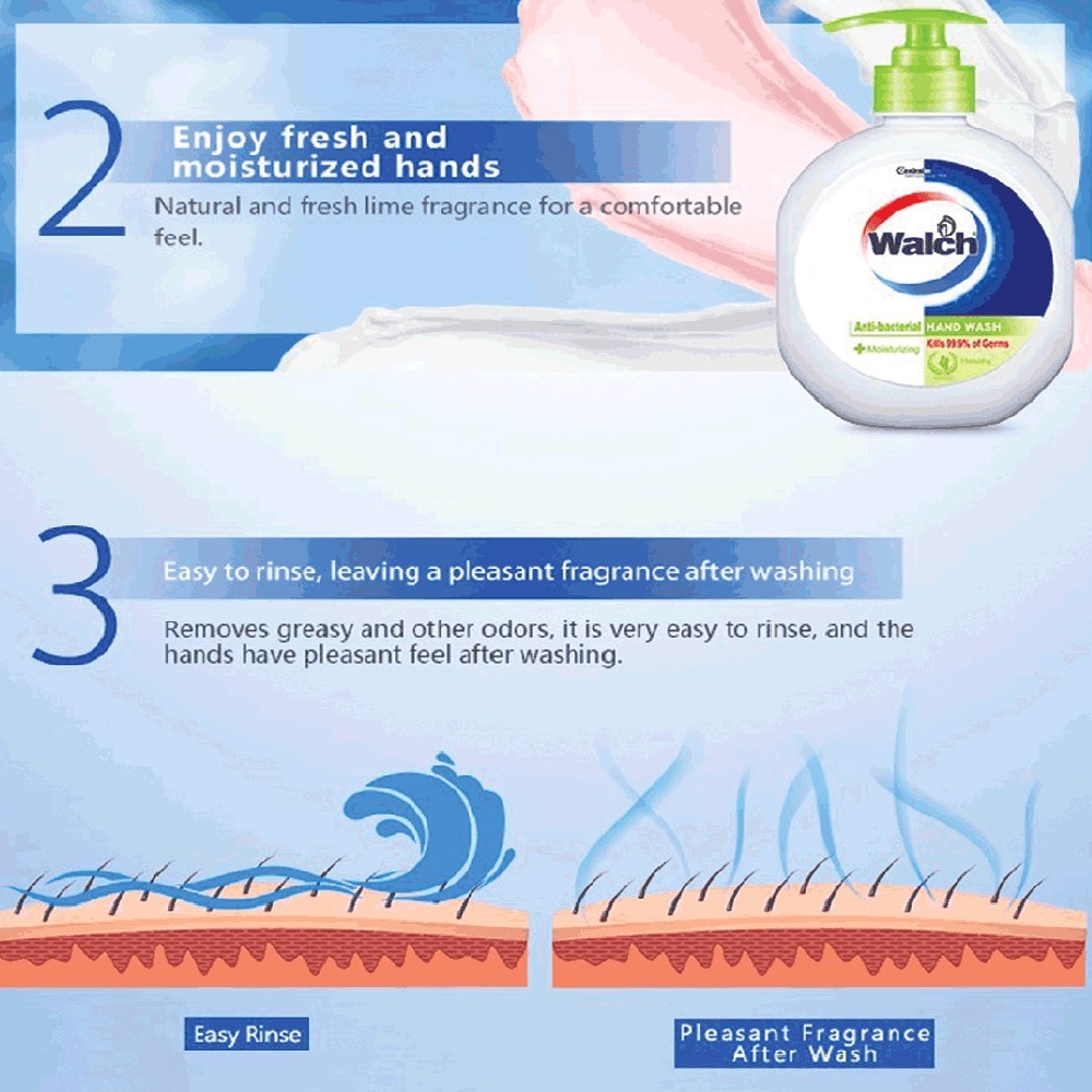 Walch Antibacterial Hand Wash 525ml - Moisturizing/ Refreshing/ Sensitive