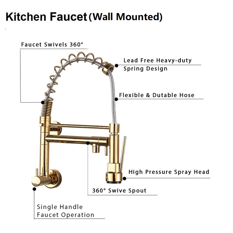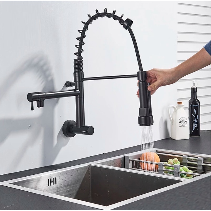 Wall Copper Modern Tap Pull Out Spray Faucet Water Tap Wall Mounted Sinki Paip Spring Kitchen 304 Stainless Steel Faucet