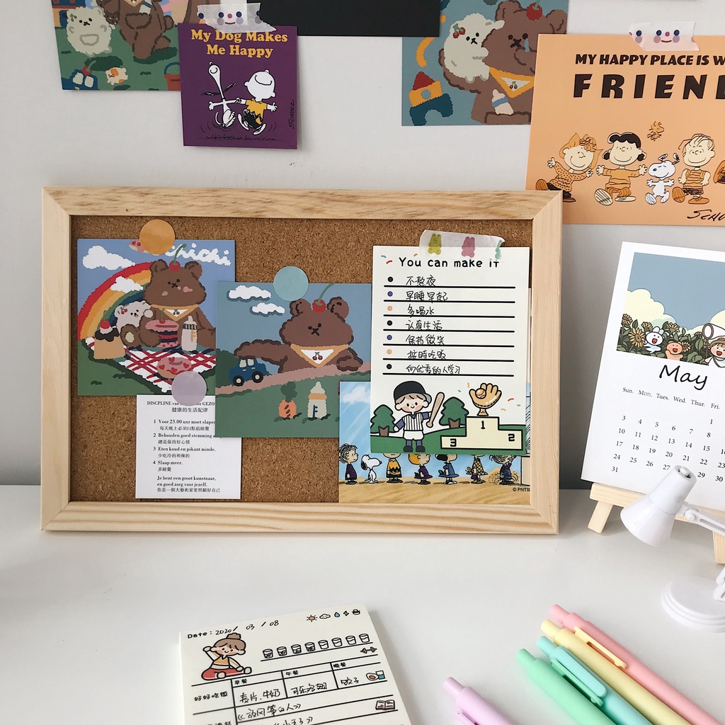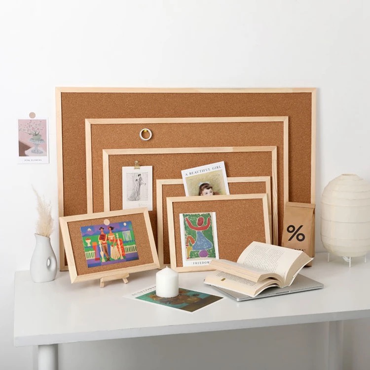Wall Hanging Message Bulletin Board/Wood Framed Cork Bulletin Board Memo Photo Wall Board with Push Pins