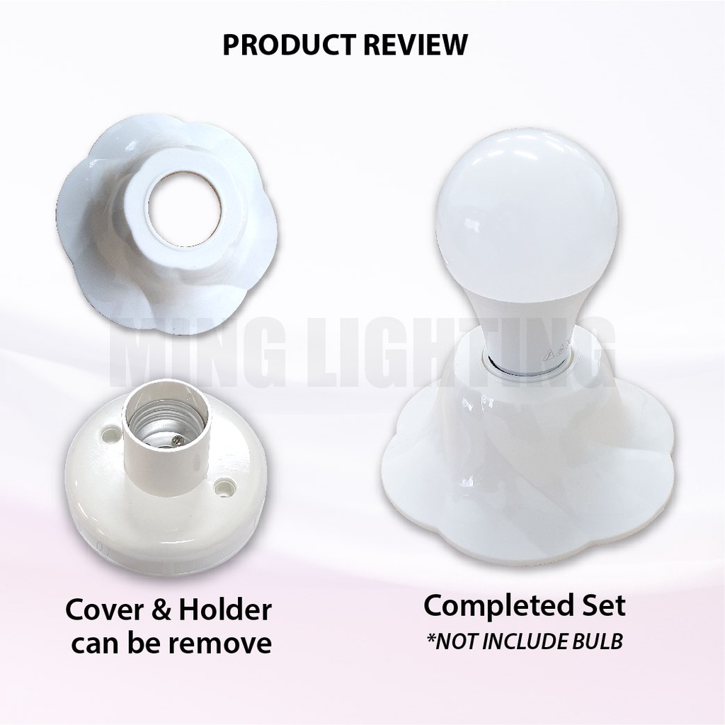Wall Mount Bulb Batten Holder E27 Cap Bulb Casing Lighting Flower Shape Ceiling Light Lampu Siling Dinding Pemegang Ment