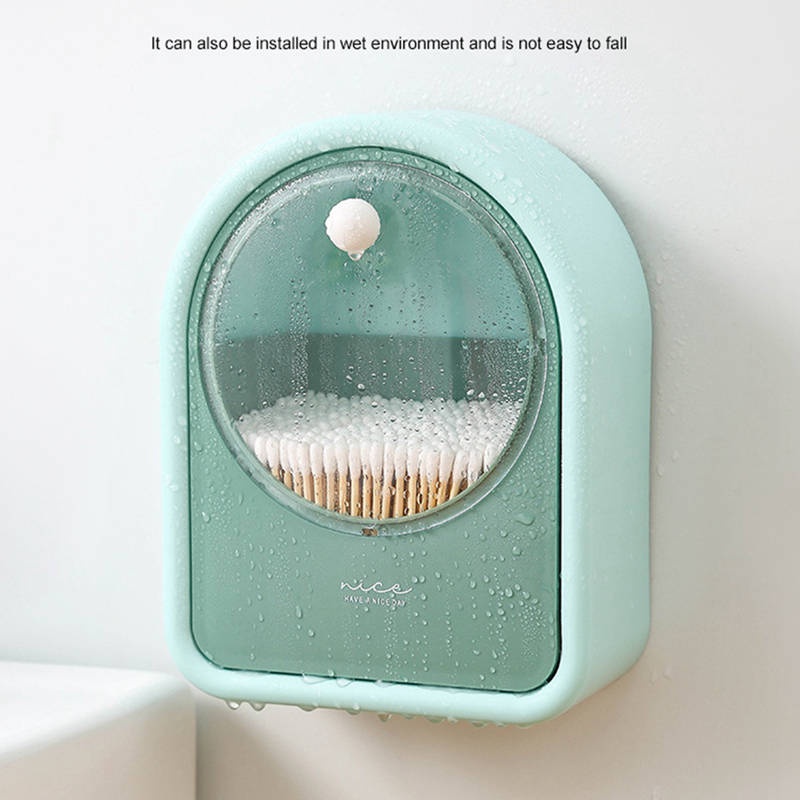 Wall Mounted Cotton Swab Storage Box with Flap Lid Waterproof Cotton Swab Cosmetic Containers Beauty Tools