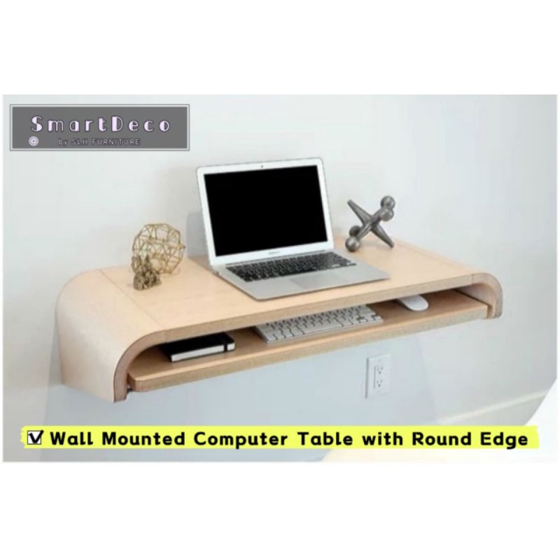 Wall Mounted Type Computer Table with HPL Laminate Surface Round Edge Modern Design Space Saver Furniture Home Office