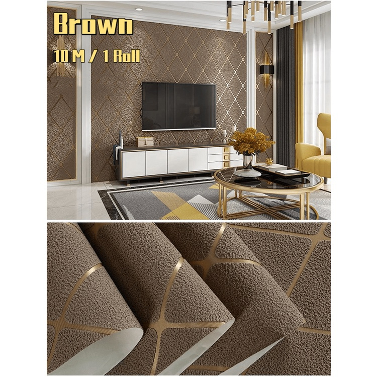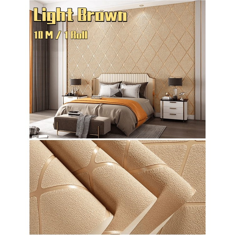 Wall Paper Dinding Ruang Tamu 10m 3D Modern Luxury Velvet Gold WallPaper With Diamond Elegant Premium Bedroom WallPaper Brown Deko Ruang Tamu Bilik Tidur Room Decor Accessories home Decoration Living Room