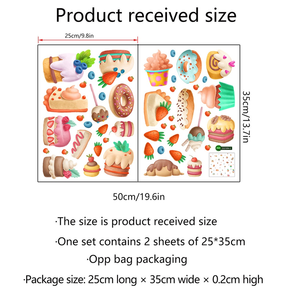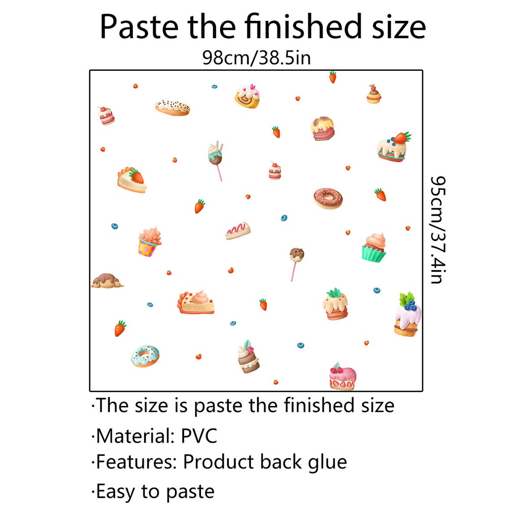 Wall Stickers Bread Cake Strawberry Donut Kitchen Restaurant Window Background Decoration Creative