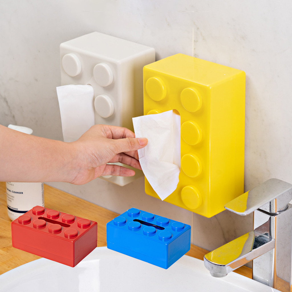 Wall-mounted Perforation-free ABS Tissue Box ABS Building Block Paper Storage Box with Spring Tissue Holder