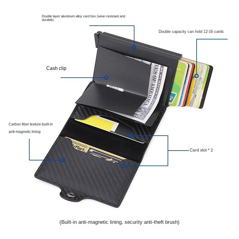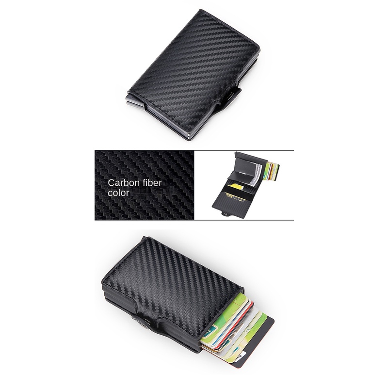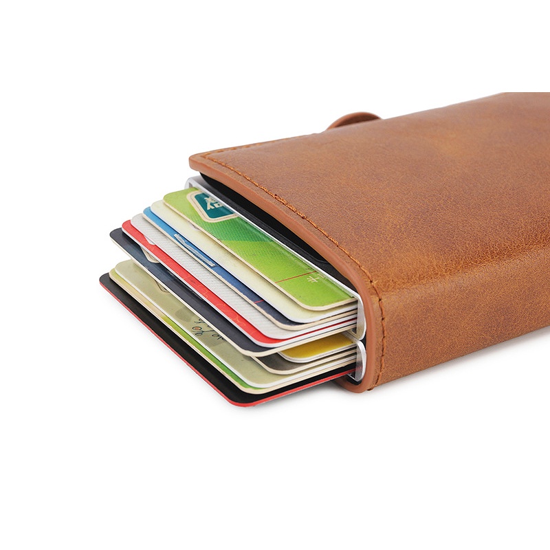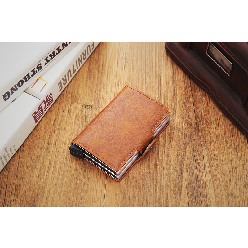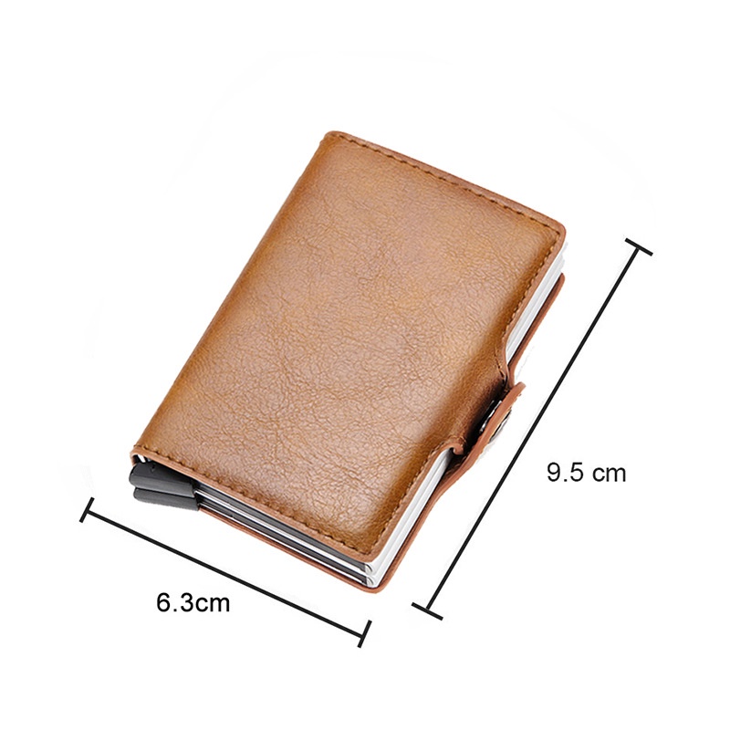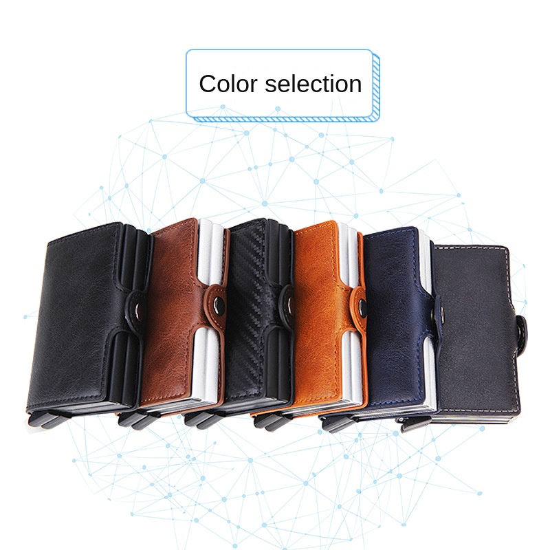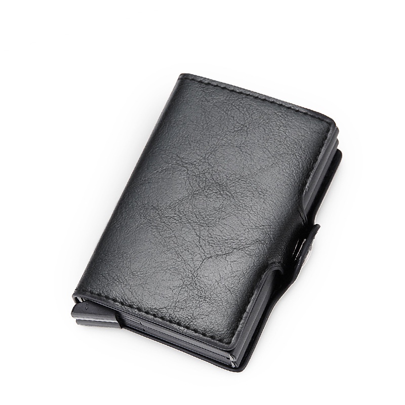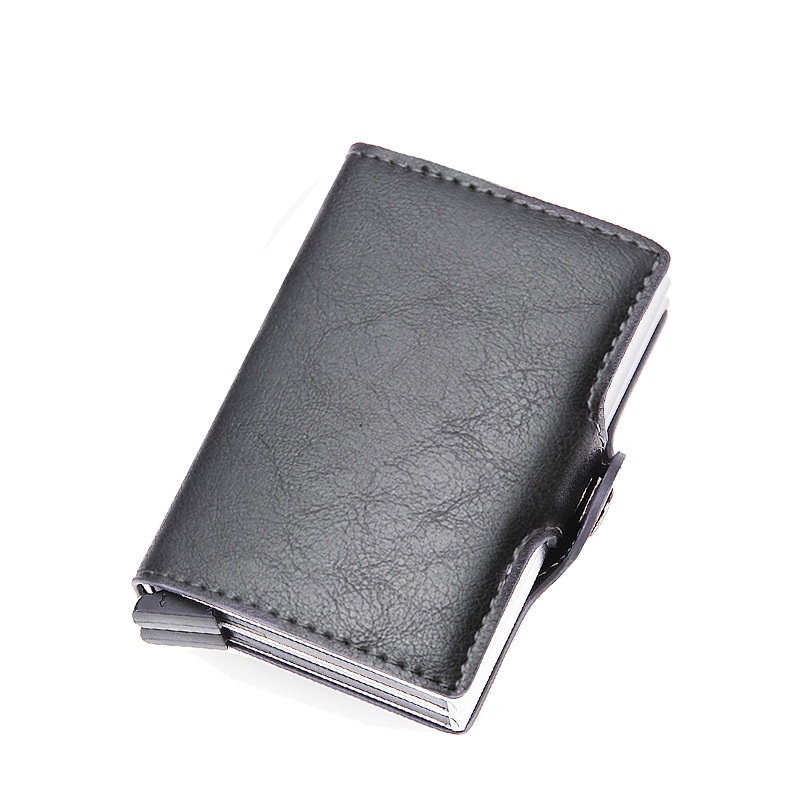 Wallet For Men PU Leather Card Holder Wallet Rfid Double Case Aluminum Card Wallet Snap Closure Customize Name